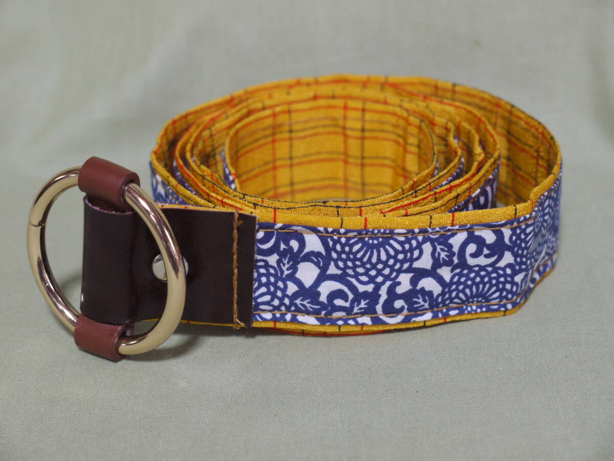 出品者ハンドメイド一点モノ★円形バックル式和柄ベルト(リバーシブル) 全長124cm(長めのベルトXL.2XL.3XL) DB25001