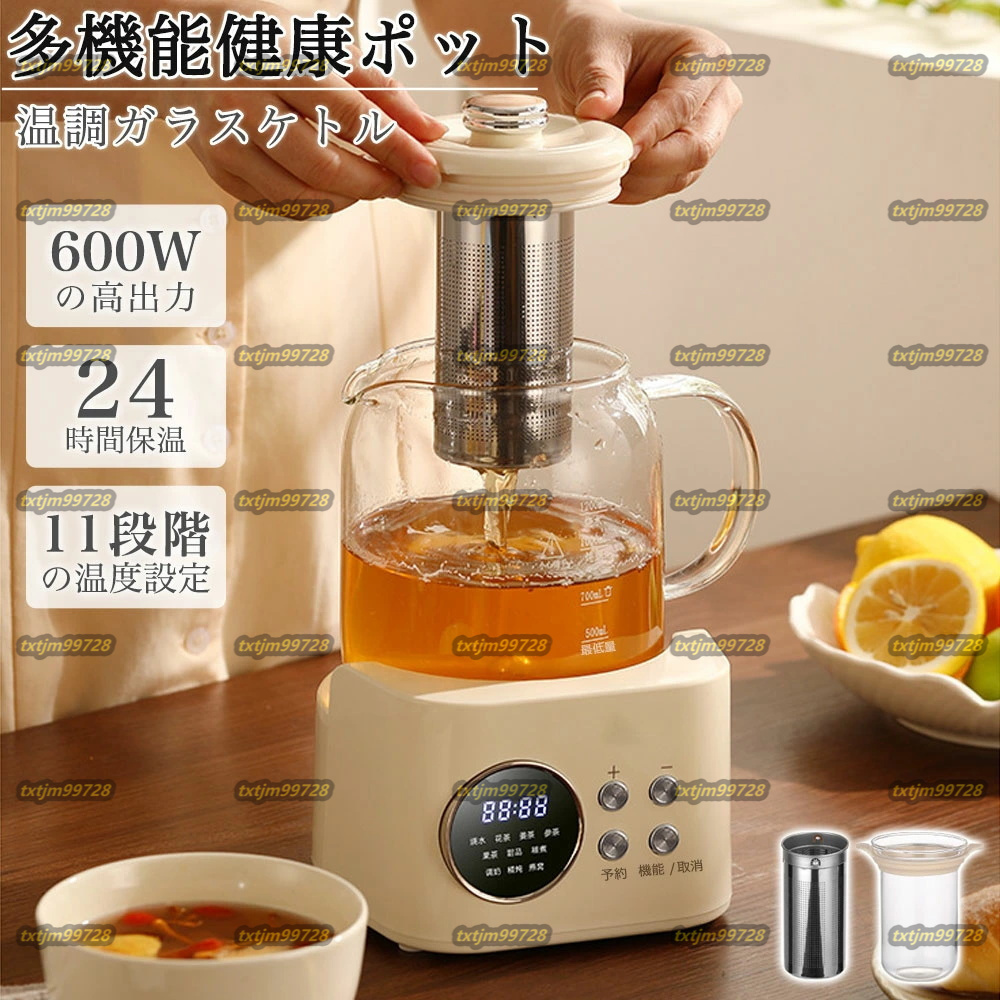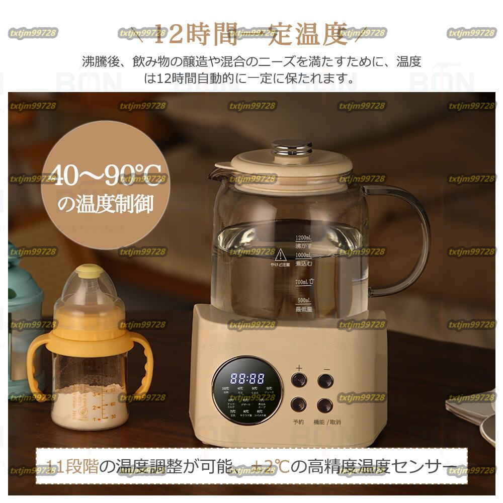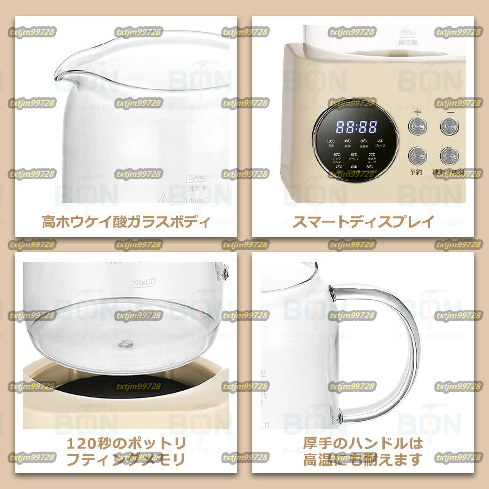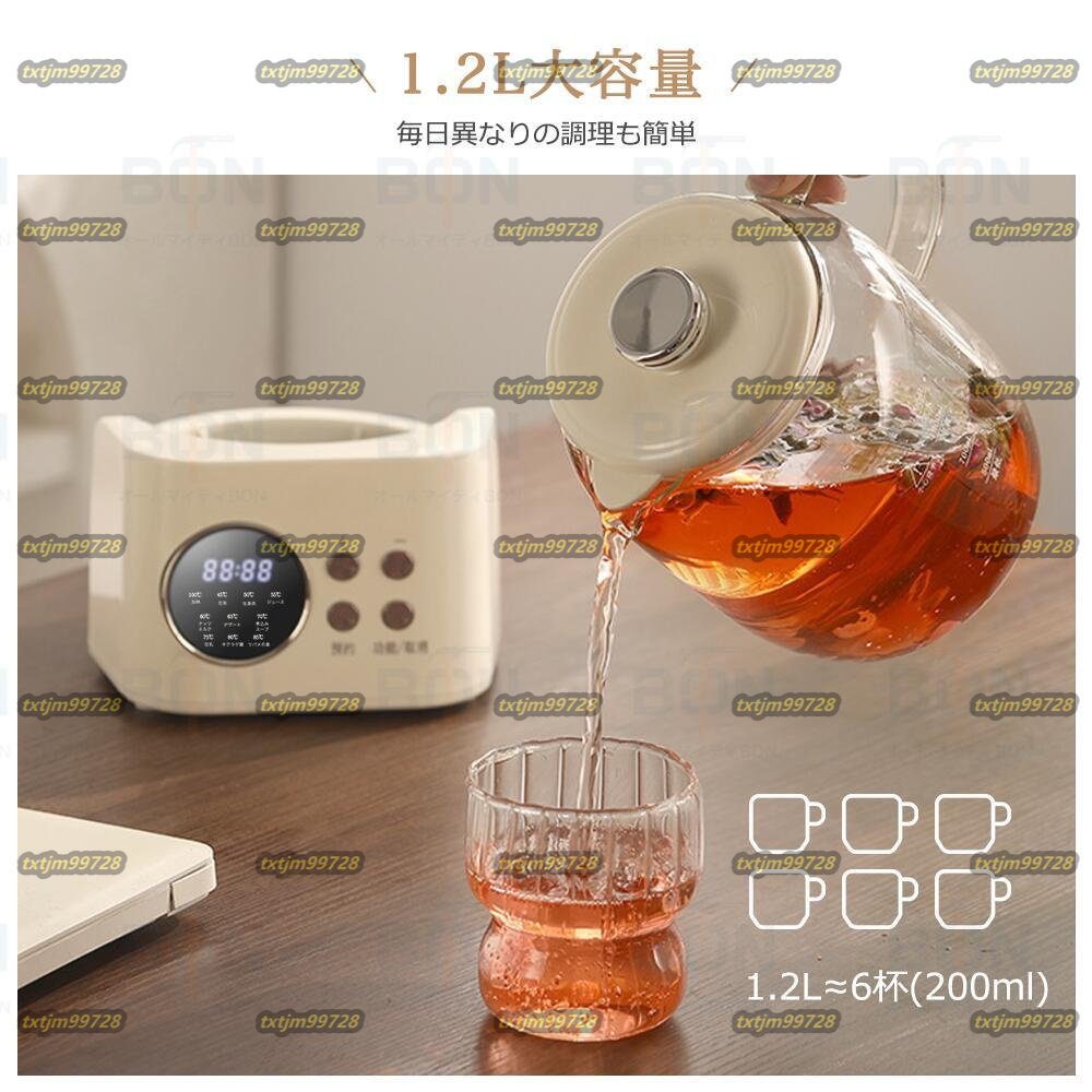 電気ケトル お茶 温度調節付 急須 ティーポッ 電気ポット 予約1.2L 湯沸かし器 保温機能付き 空焚き防止 沸いたら自動でオフ 耐熱ガラス