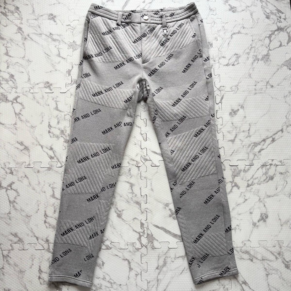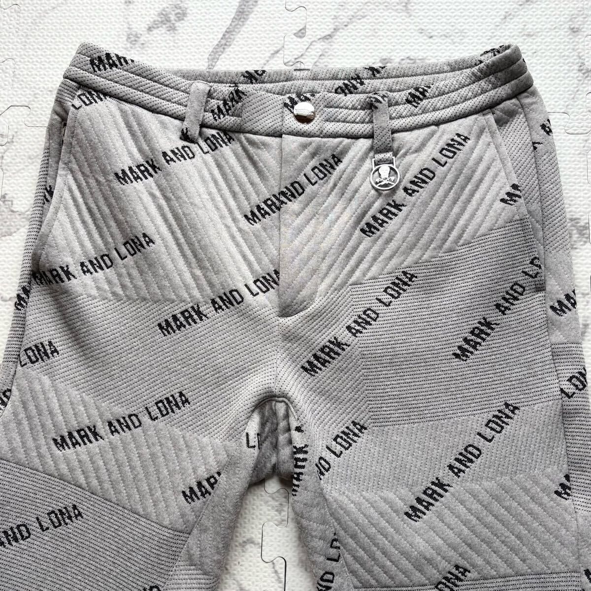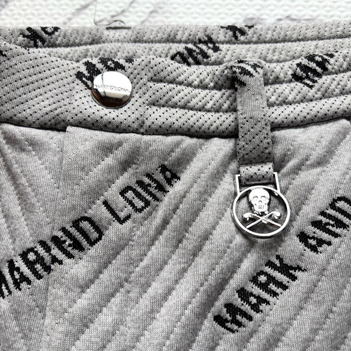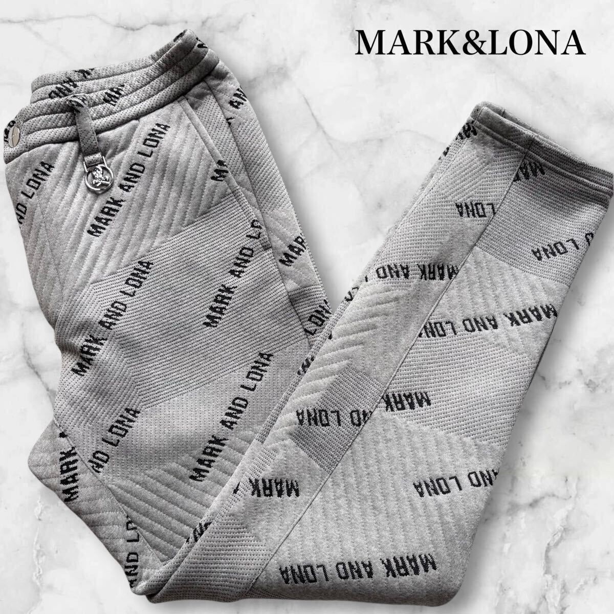 美品/L相当●MARK&LONA マークアンドロナ ジョガーパンツ ロゴ総柄 スカル ゴルフウェア スウェット ストレッチ メンズ グレー 48 秋冬