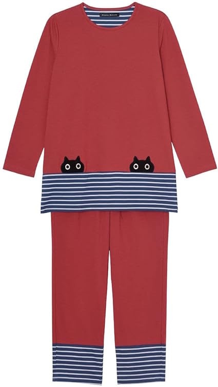 マタノアツコ★ワコール★長袖パジャマ★Lサイズ★ネコのMEMEちゃんxボーダー★綿100% 天竺素材★レッド/RE★俣野温子