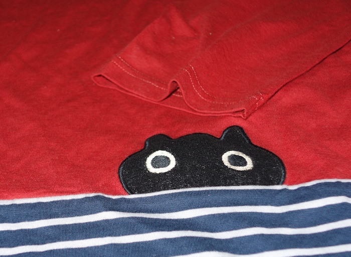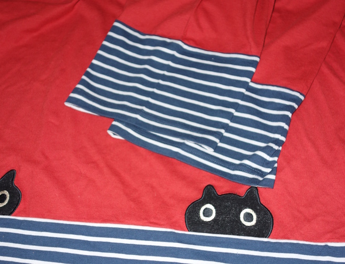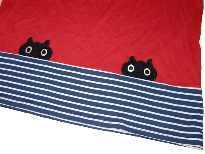 ・シンプルな無地とボーダーに、大きくあしらった猫のキャラクターMEMEちゃんがポイント