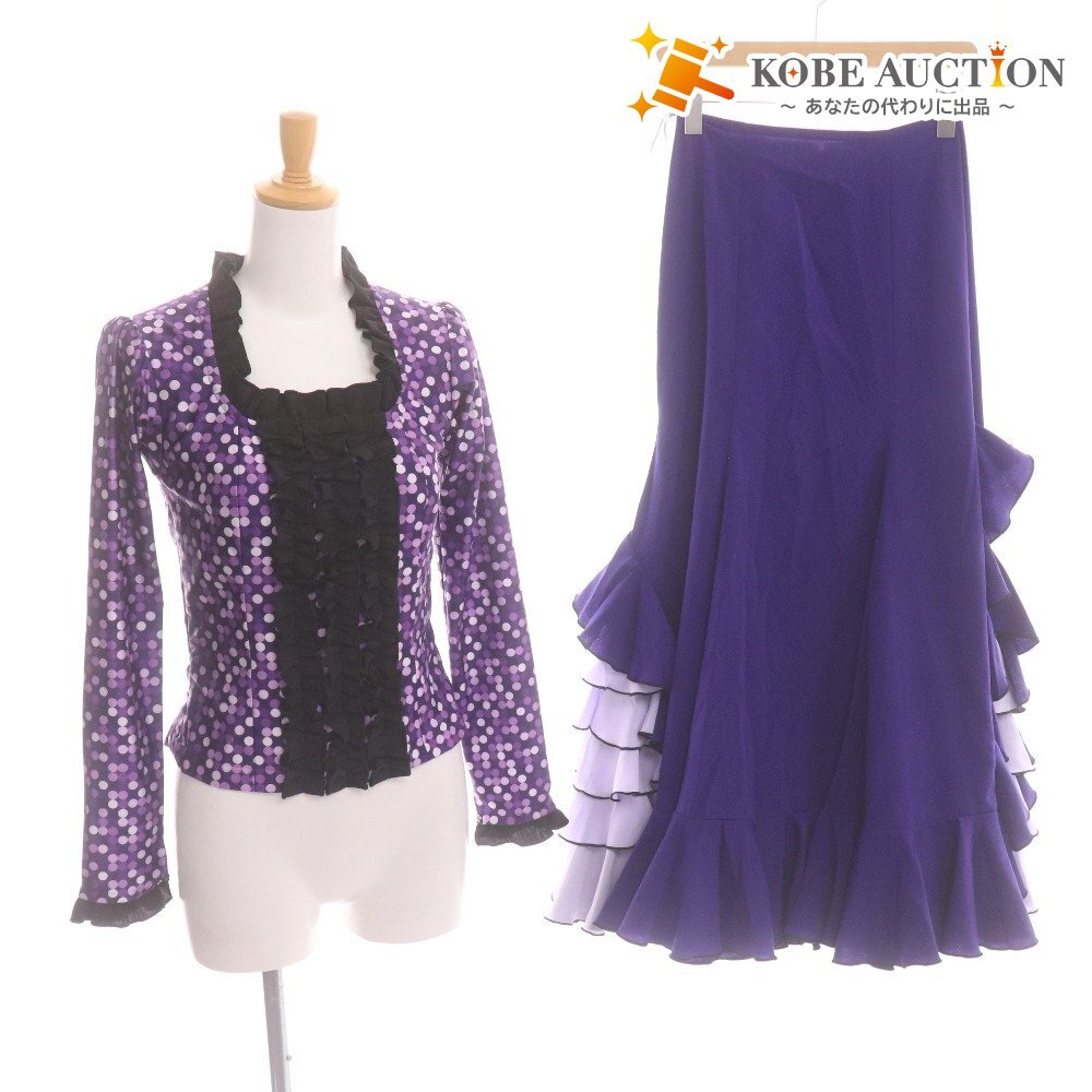 フラメンコ 衣装 セットアップ トップス ボトムス ドット レディース パープル ブラック オーダー品とお伺いしております。 付属品:写真のものが全てです ●表記サイズ:記載がありませんでした 【上着】 ○実寸 着丈:48.7cm 肩幅:34.1cm 身幅:39.7cm 袖丈:60.6cm 裄丈:78cm 【スカート】 ○実寸 ウエスト周り(平置き幅×2):62cm 着丈:93.3cm ヒップ:90cm ⇒ アパレル商品のカラー基準・採寸方法・海外サイズ換算表 (参考)トルソー(マネキン)は男女ともMサイズです。 素材:品質の記載は見受けられません。 | ||||||||||||||||