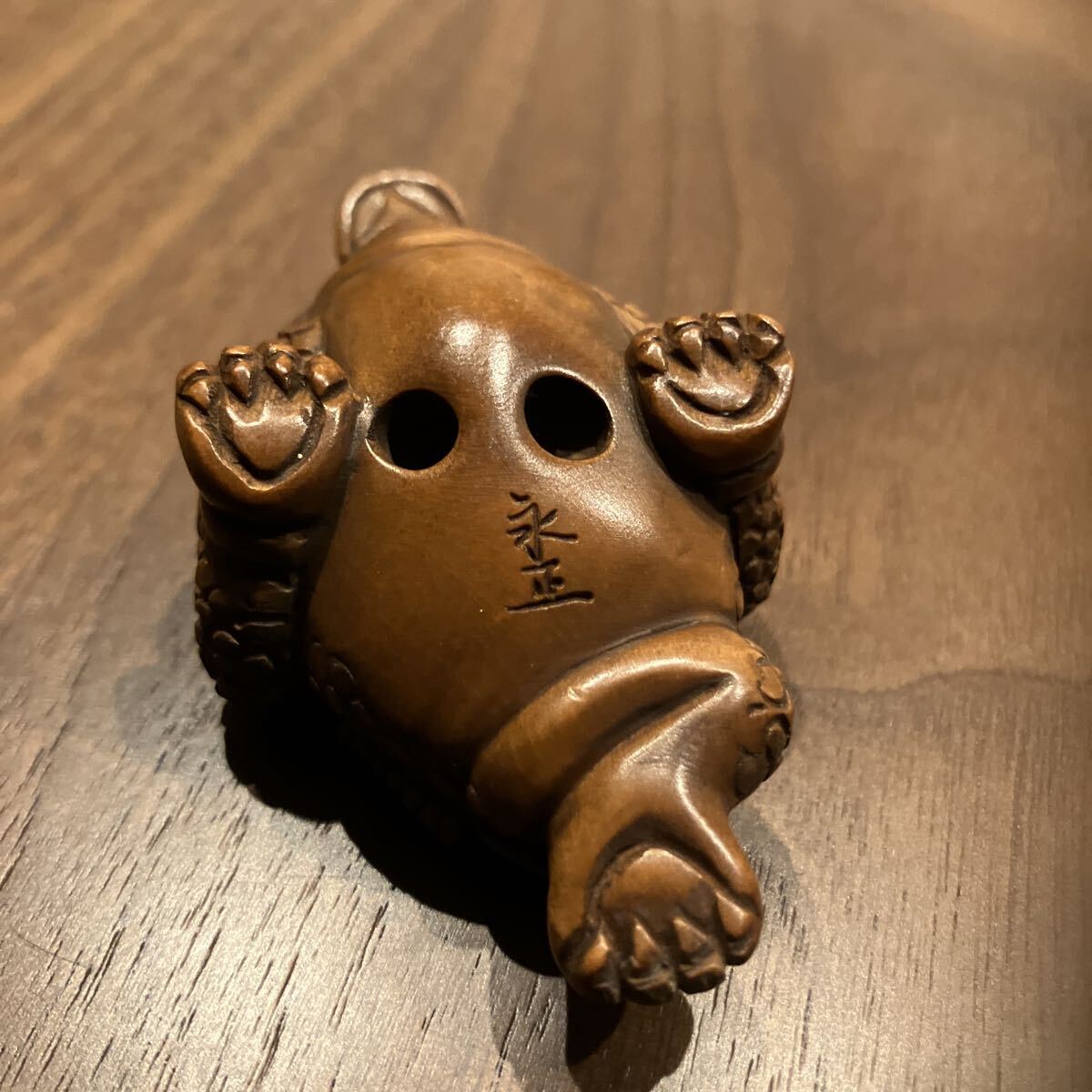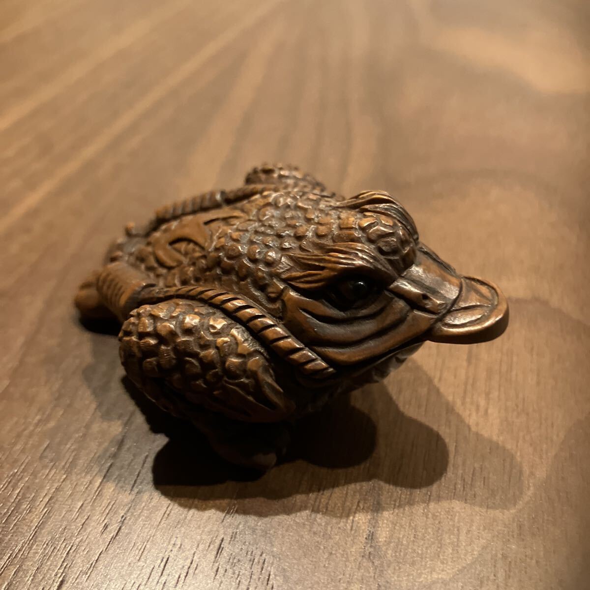 高さ約2.4センチの銭カエルの根付です。永正の銘があります。