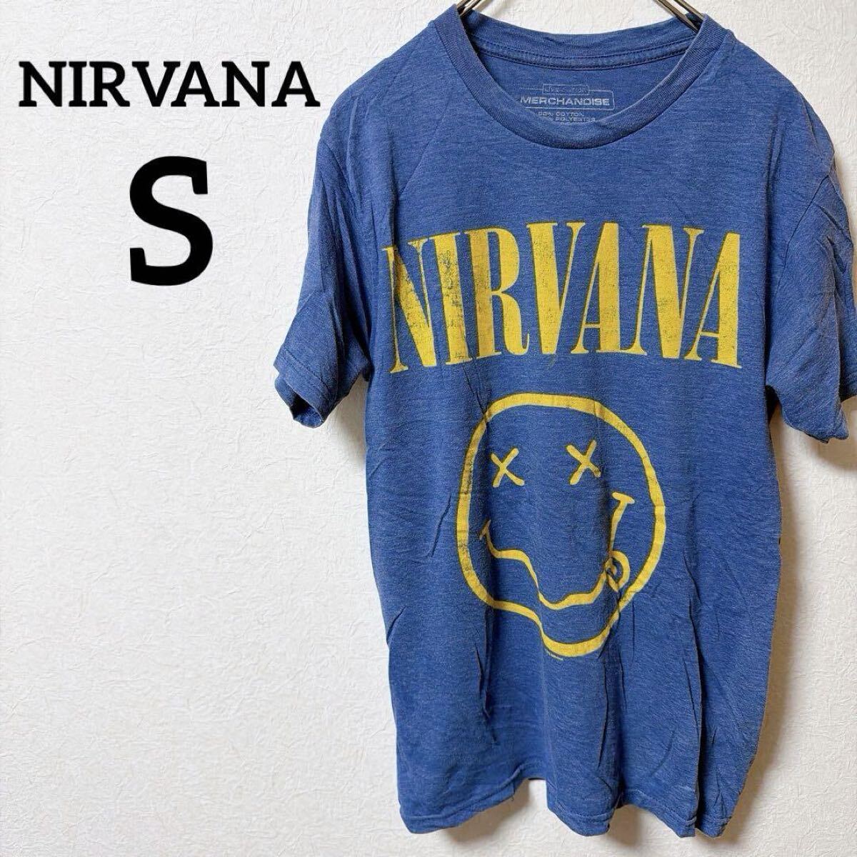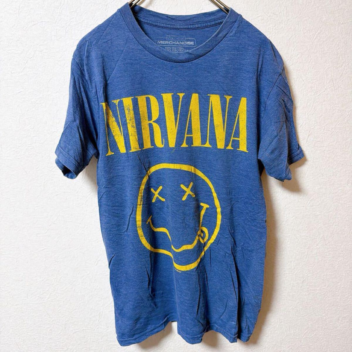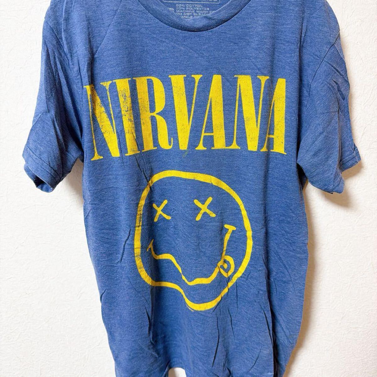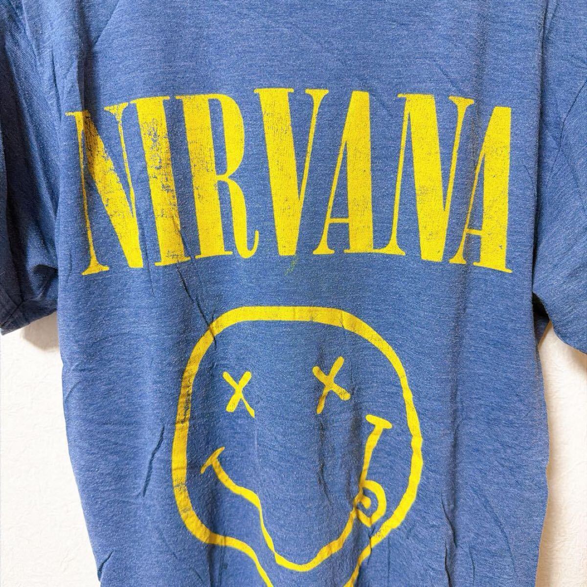 NIRVANAのグラフィックプリントTシャツ、ブルーのSサイズ。