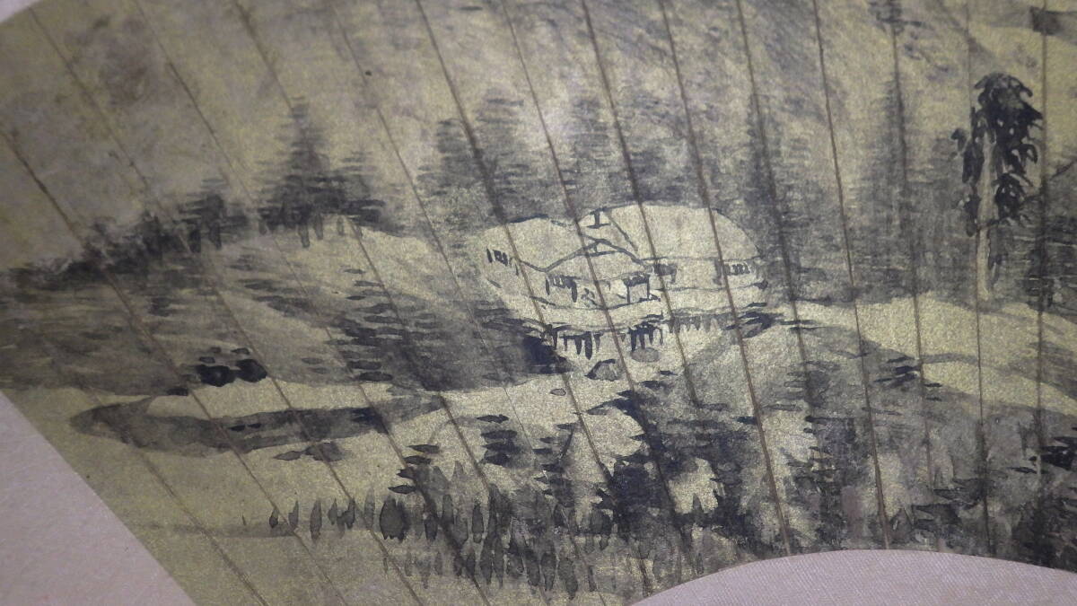 中国画扇面 清時代 民国 柳谷? 楊念伯? 詳細不明                     古美術品 山水図 骨董品 中国古玩 中国書画 扇子