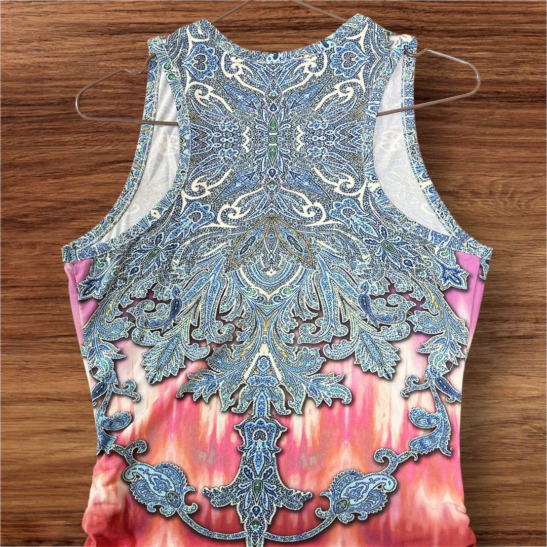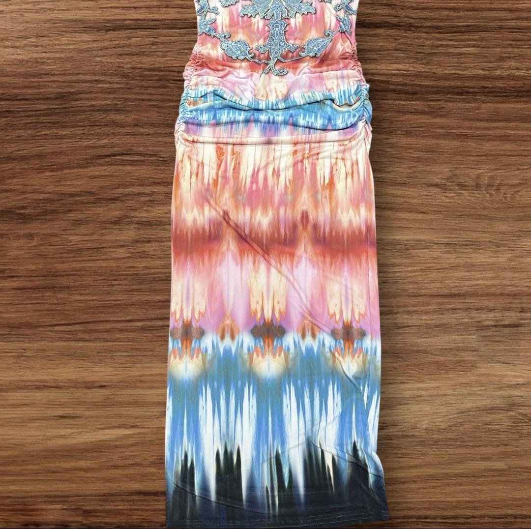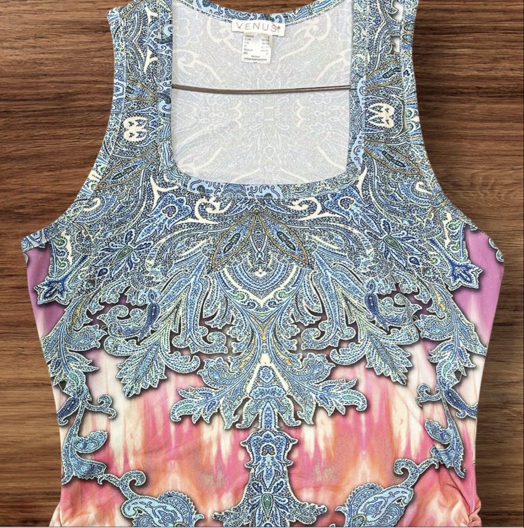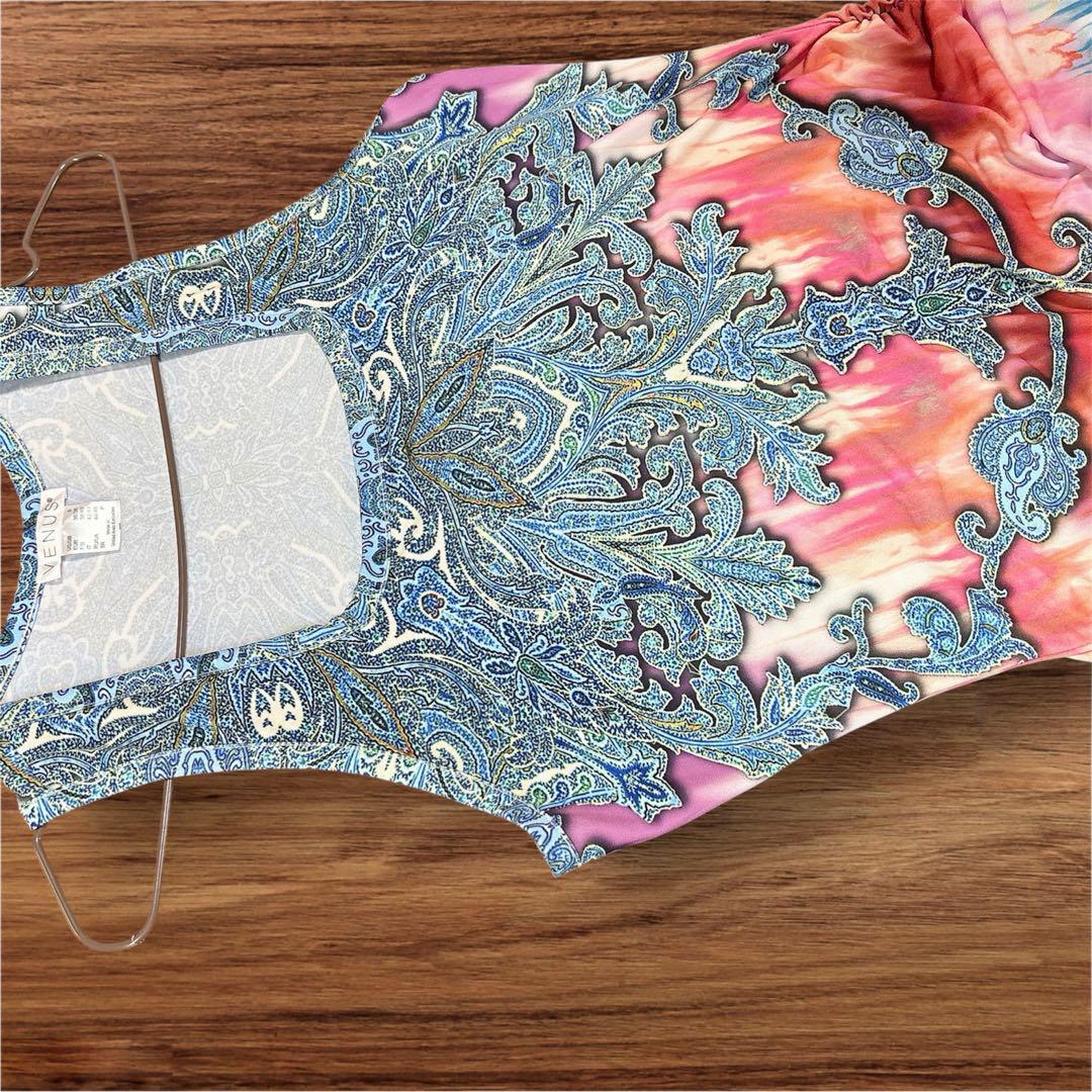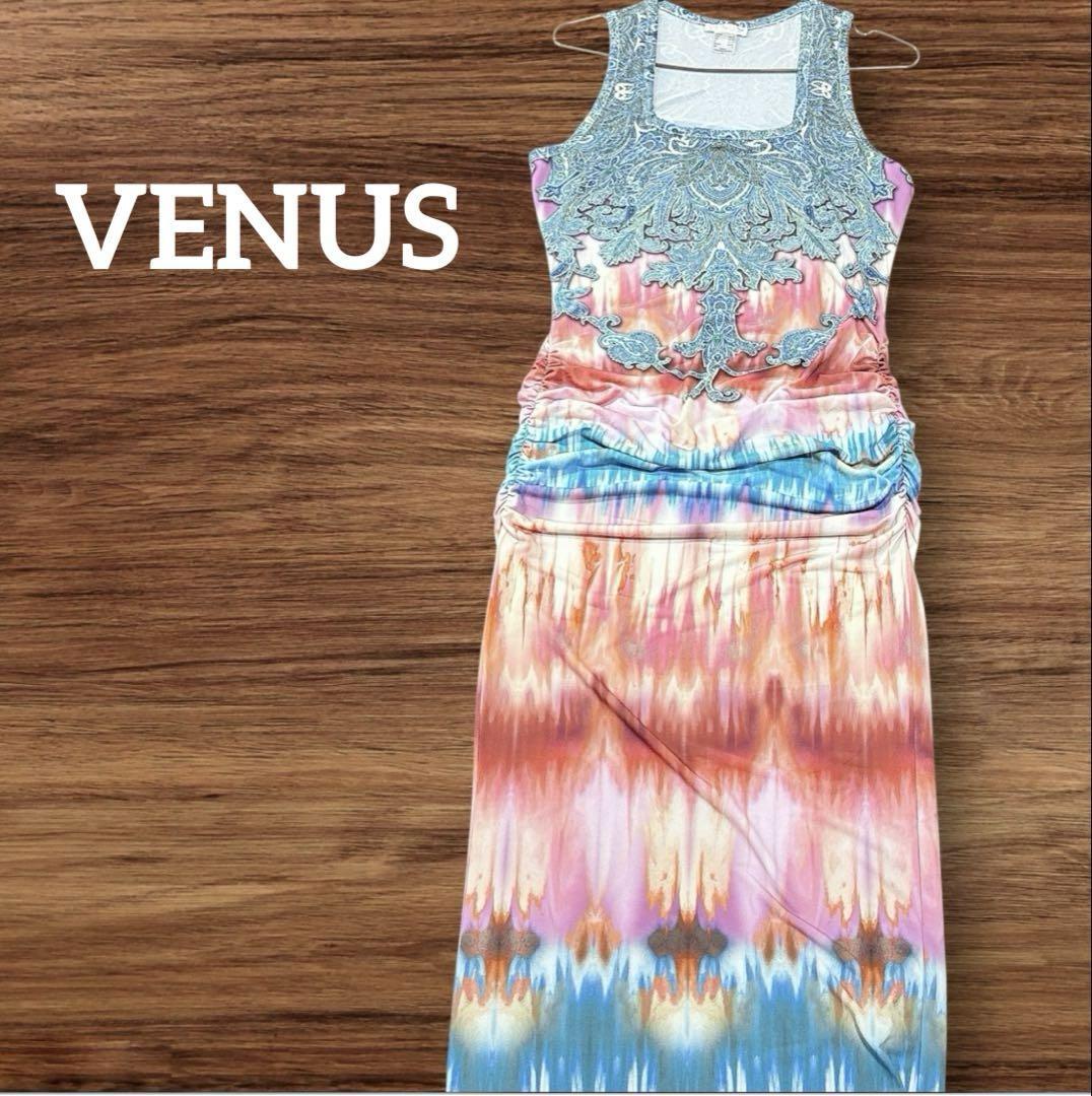 鮮やかなマルチカラーのデザインとエレガントな刺繍が特徴のVENUS製キャミワンピース。