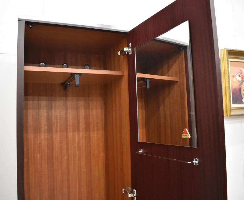 | ■備考 天童木工 TENDO 木製ワードローブ 高さ1800 天童木工の木製ワードローブです。 鏡 タオル掛け ハンガーかけ 棚2ケ ※鍵2本付。 ※佐川急便ではなくJPロジスティクス(旧トールエクスプレスジャパン)・西濃運輸・自社便・チャーター便・チャーター便(混載)等で弊社の判断によりお届け方法を決定させていただきます。 4t車が進入できる路上までのお届けとなります。 トラック荷台上でのお引渡しとなります。 男性2名以上での荷受けを推奨しております。 日曜祝日の配達日指定が出来ません。 配達時間帯指定が出来ません(9~17時着・配達当日配送ルートが決まるため)。 4t車が進入できない場所への配送・日曜祝日着・配達時間帯指定・トラックからの荷下ろし作業・搬入作業・組立作業等をご希望である場合はお見積りにて対応となりますのでお申し付けください(お見積りできない場合がございます)。 クリーニングとメンテナンスをしっかり行ってお届けします。 この商品の程度は中古品として美品といえます。 多少の擦れや傷はあるものの気になる程ではないでしょう。 御使用端末の環境により多少画像の表示色と実物の色に差違が生じる場合がございますのでご了承ください。 | |