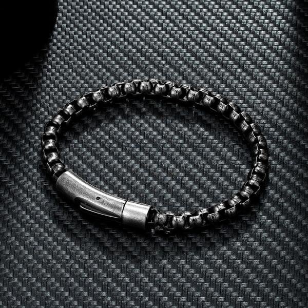 ブレスレット 自転車 スクエア ステンレス チェーン ラウンド メンズ