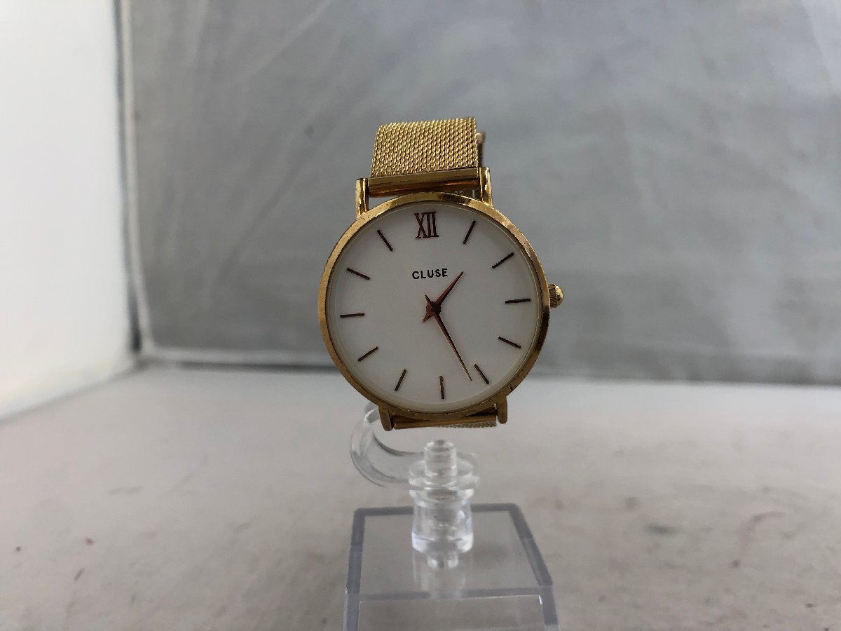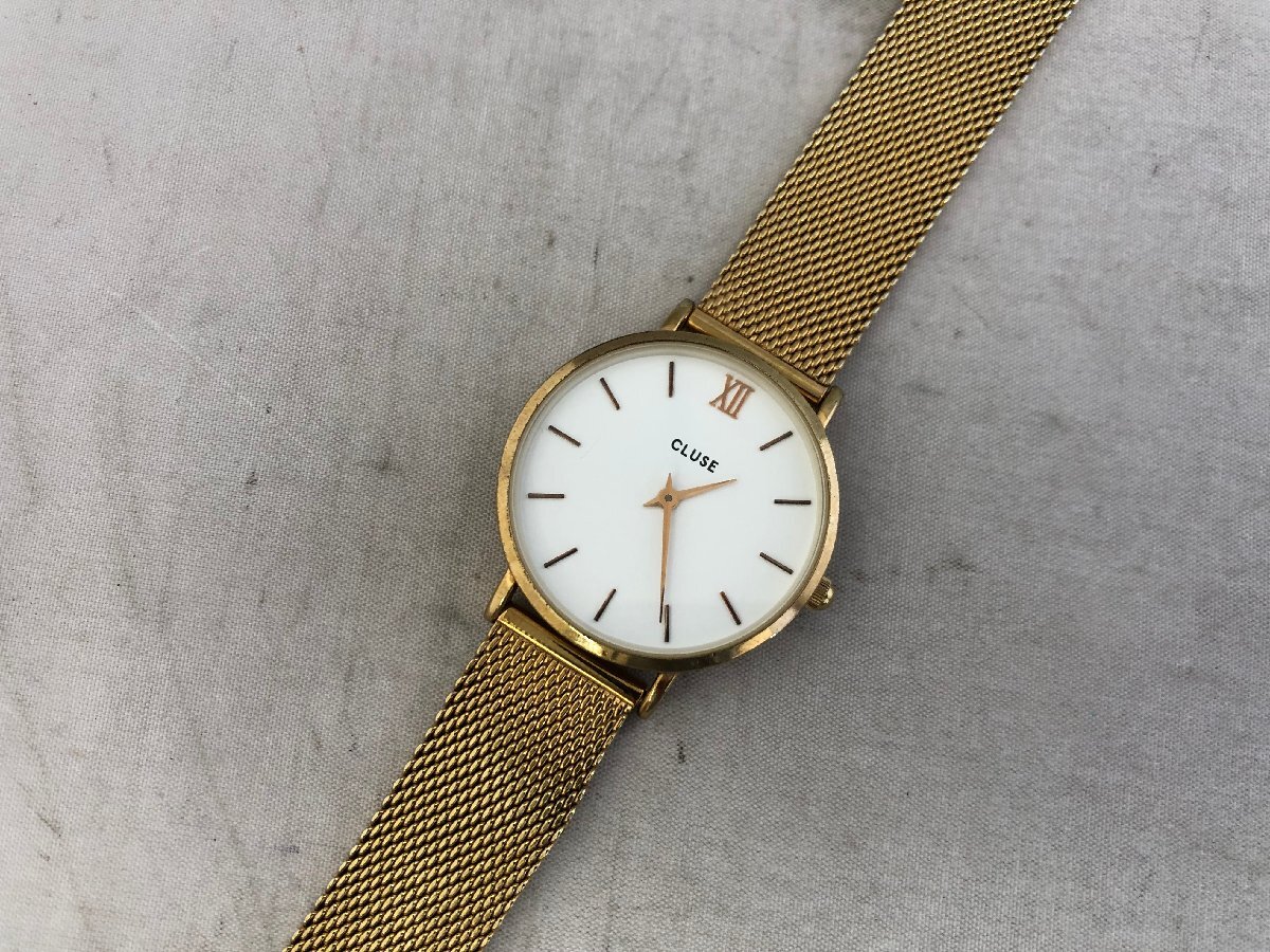 【CLUSE】 クルース アナログ2針 クォーツ式 ホワイト×ゴールド系カラー 腕時計 SY02-F8Y●