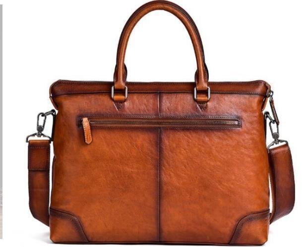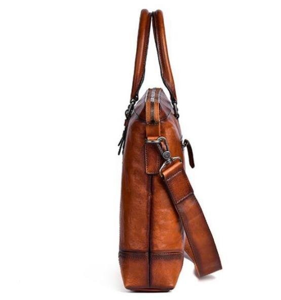 新品◆セレブ好物 手染め ヌメ革 ハンドメイド メンズバッグ 本革 ビジネスバッグ サイズ対応 14ノートパソコン入れる可能 通勤