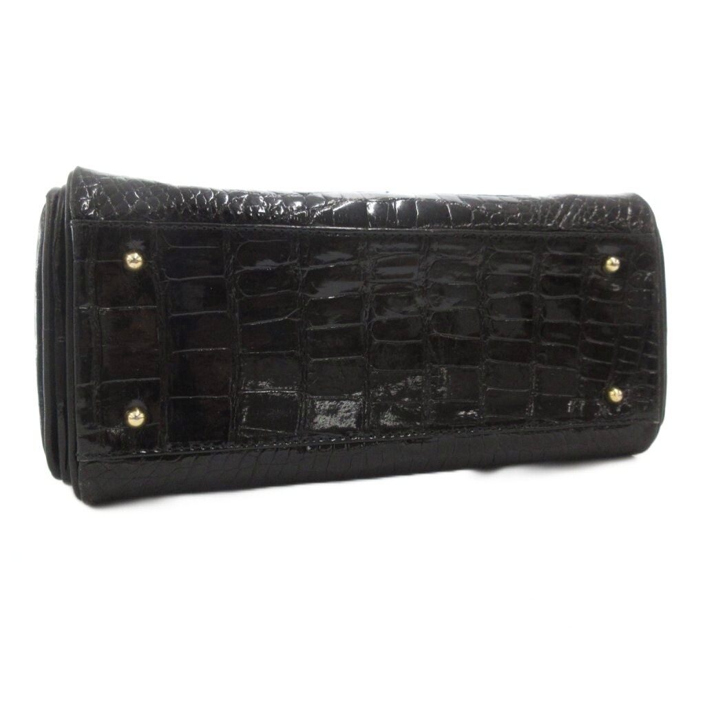 ノーブランド ハンドバッグ シャイニー クロコダイル レザー ワニ革 黒 ブラック /GV ■GY18 レディース