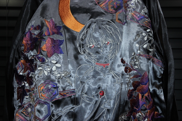 未使用 錦 nishiki × エヴァンゲリオン 零号機 × 綾波レイ 刺繍 リバーシブル スカジャン / ブラック