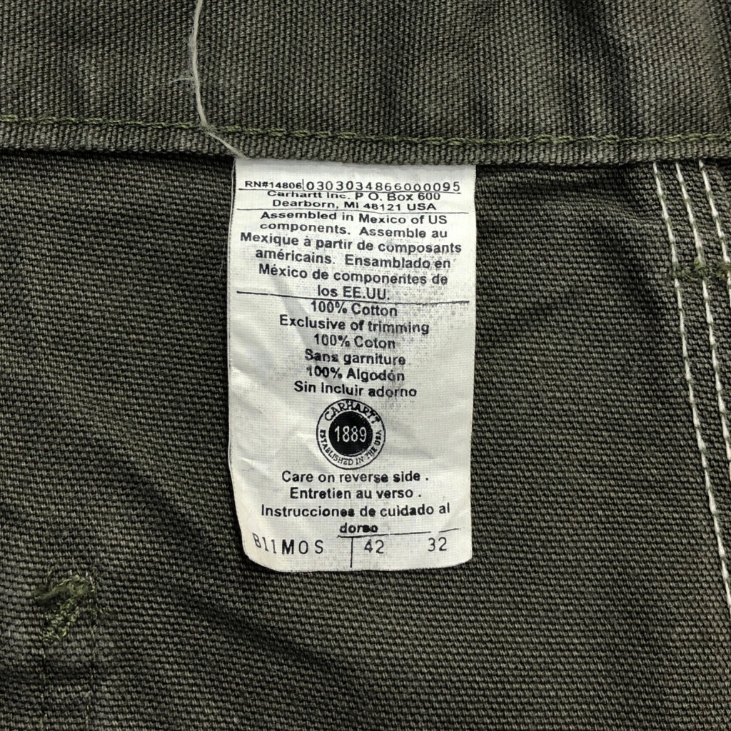 【商品管理番号】 U9005 【ブランド】 Carhartt/カーハート 【サイズ】 W42 L32 【実寸サイズ】 ウエスト:約108cm 股上:約36cm 股下:約80cm わたり幅:約40cm 裾幅:約26cm 【主な素材】 表地 : コットン 【色】 カーキ 【仕様】 ダック ペインターパンツ 【状態】 汚れ:ふくらはぎ 特記事項:変色 |