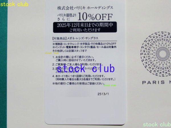 パリミキ(三城)ホールディングス株主優待の株主優待カード(10%割引)1枚です。