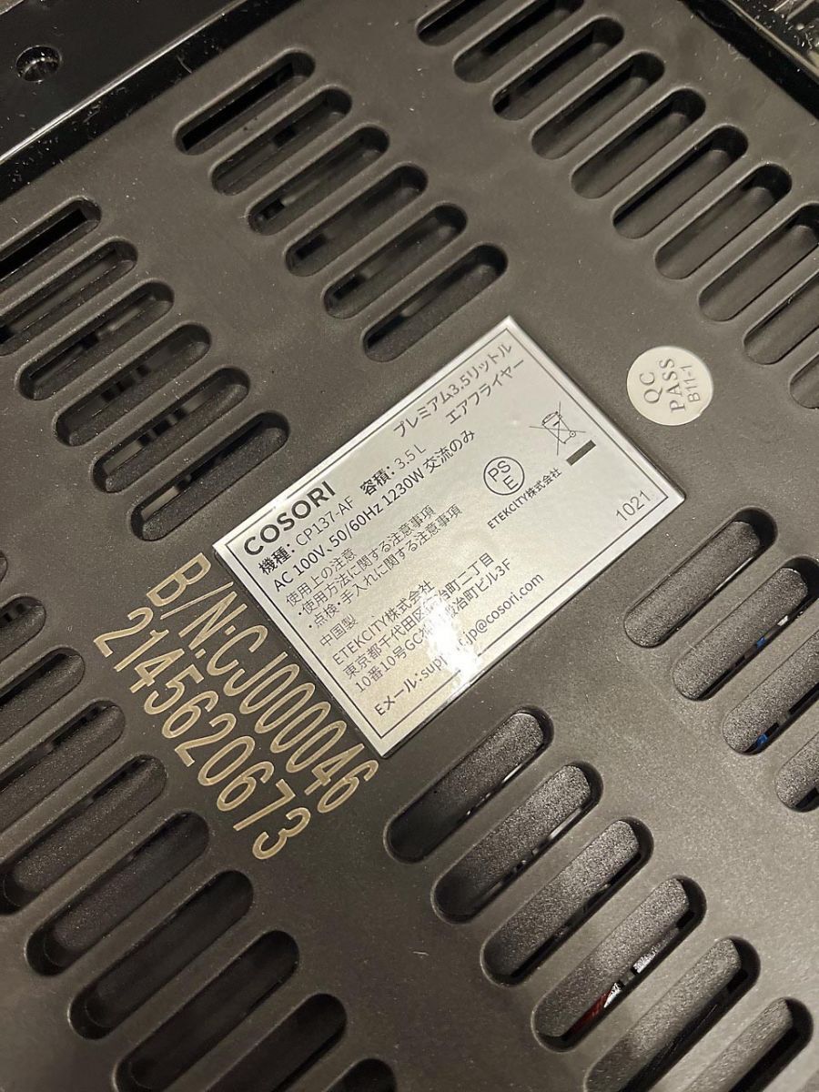 【商品名】 COSORI コソリ ノンフライヤー 3.5L エアフライヤー CP137-AF