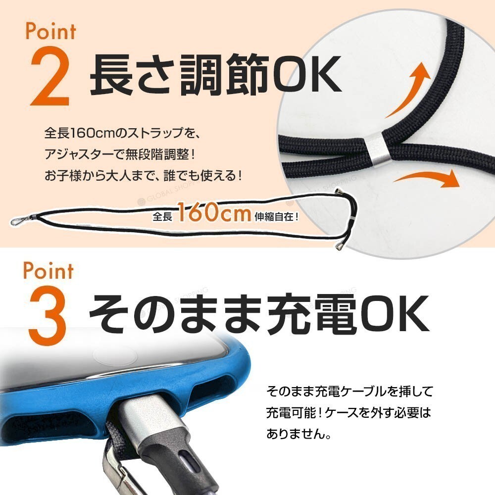 スマホショルダー スマホストラップ 全機種対応 肩掛け 首掛け 斜めがけスマホ ストラップ 紐 ショルダーストラップ 落下防止 ブルー