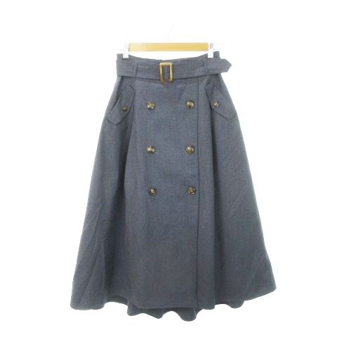 ビームスハート BEAMS HEART トレンチスカート フレア ミモレ ロング バックゴム ベルト S 青 ブルー /AH2 レディース