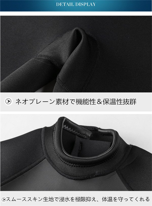 【商品特徴】◇保温効果だけではなく、日焼け対策やクラゲ対策にもなります。◇海水浴やプール、川でのスイミングはもちろん、サーフィン、カヌー、ダイビング、ヨットなどのアクティブなシーンでも大活躍。○【素 材】3mmストレッチネオプレーン、両面ナイロン○ストレッチネオプレンを使用、 運動性、保温性に優れて、幅広く利用できるオールシーズンワンピースです。○人間工学に基づくカッティングでお肌と ピッタリして浸水を有効抑え、体温を守ってくれます。【保管について】☆海から上がったら、なるべく早めに洗う。☆熱いお湯はNG、必ず水かぬるま湯で洗う。☆乾燥は直射日光を避け、細いハンガーは使用しない。しっかりと乾燥したら、なるべく早めに表面へ戻す。