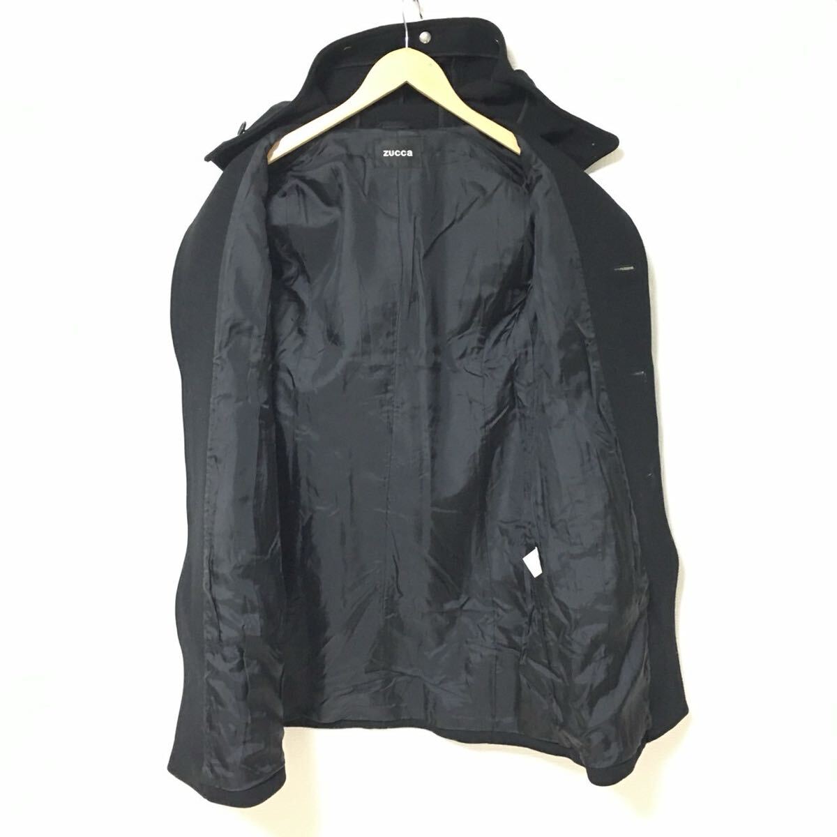 W516【ZUCCA】ズッカ ロングコート アウター 日本製 ウール混紡 ビジネス フォーマル シンプル お出かけ ブラック メンズ サイズS/fF