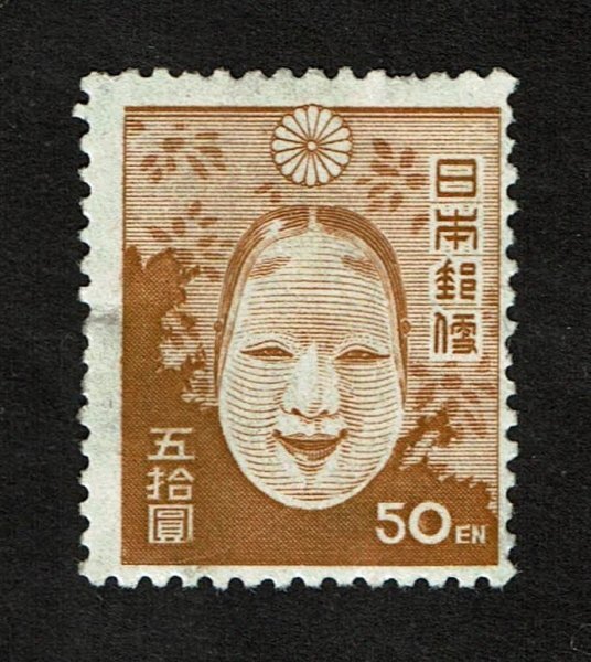 P342■【糊落ち】1946年 第2次新昭和切手 能面 50円■未使用・良好