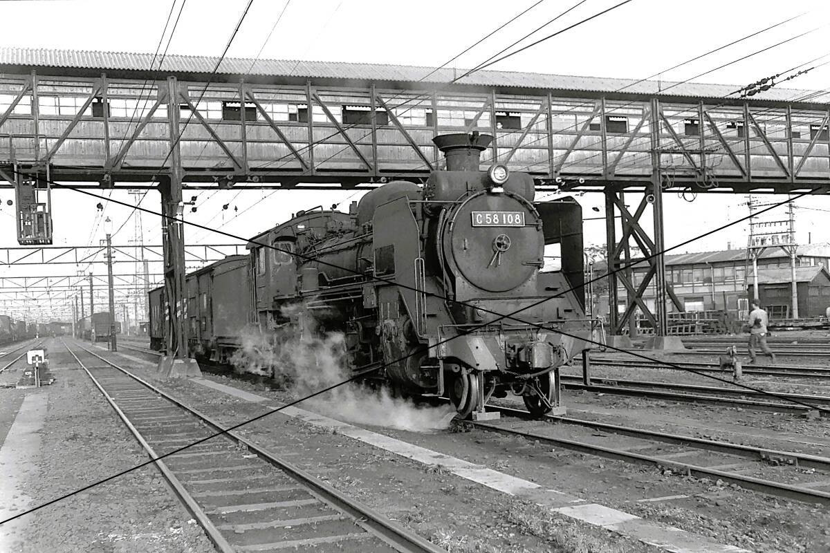 C58-108〔沼〕+FC-入換専用機=昭和40年代のSLモノクロネガ35mm1コマ#30/沼津駅入替作業中/単機/S43.4.7/著作権譲渡証明書=有り