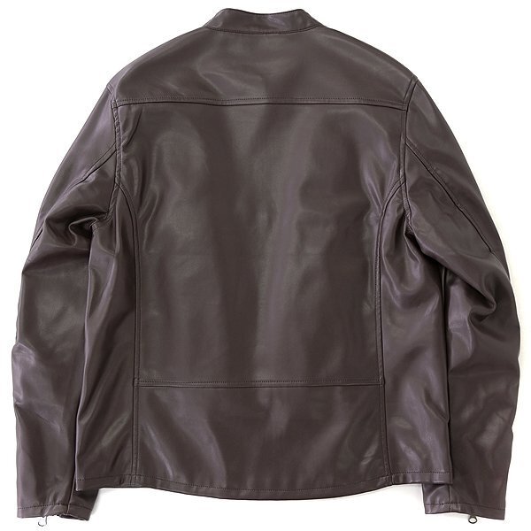 ラムレザーのような、なめらかで柔らかく上品さのある合成皮革を採用したライダース。 本革と異なり、軽量で着心地快適なのもポイントで、ストレッチ性にも優れています。 ベーシックなシングルライダースは様々なスタイルにマッチするので、幅広く着回しが利いて万能的に活躍してくれます。 【デザイン】 ・総裏仕立て ・フロントはシングルジップ ・袖先にジップ付き |