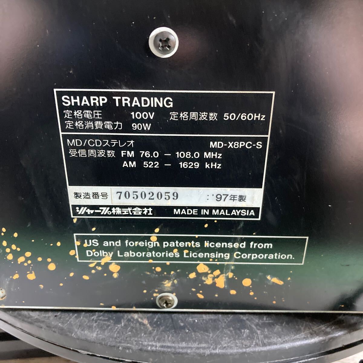 MYM10-266 激安 SHARP MD/CDステレオ MD-X8PC-S 通電、電源オン、オフOK 中古現状品 ※3回再出品で処分