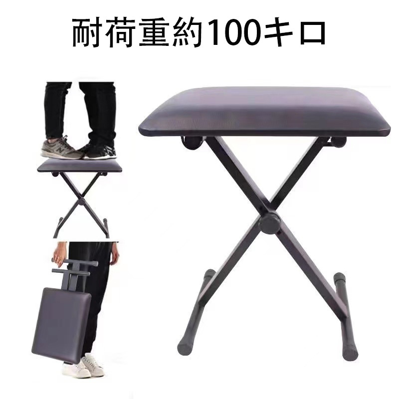 キーボードイス キーボードベンチ ピアノ椅子 ピアノスツール X型 チェア 折り畳み椅子 クッションスポンジ 4段階調節 ブラック