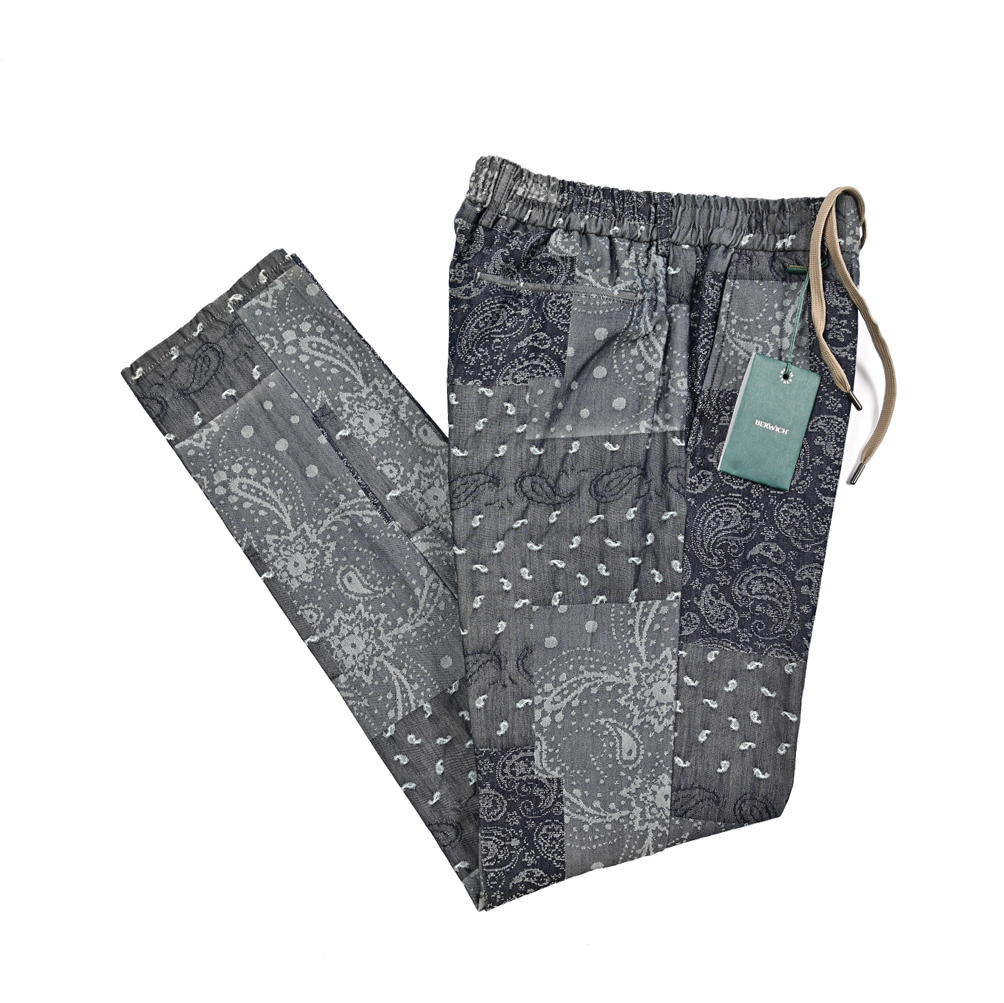 ベルウィッチ BERWICH SPIAGGIA イージースラックス ノータック パンツ 秋 3シーズン メンズ コットン100% ペイズリー ネイビー グレー MADE IN ITALY | |