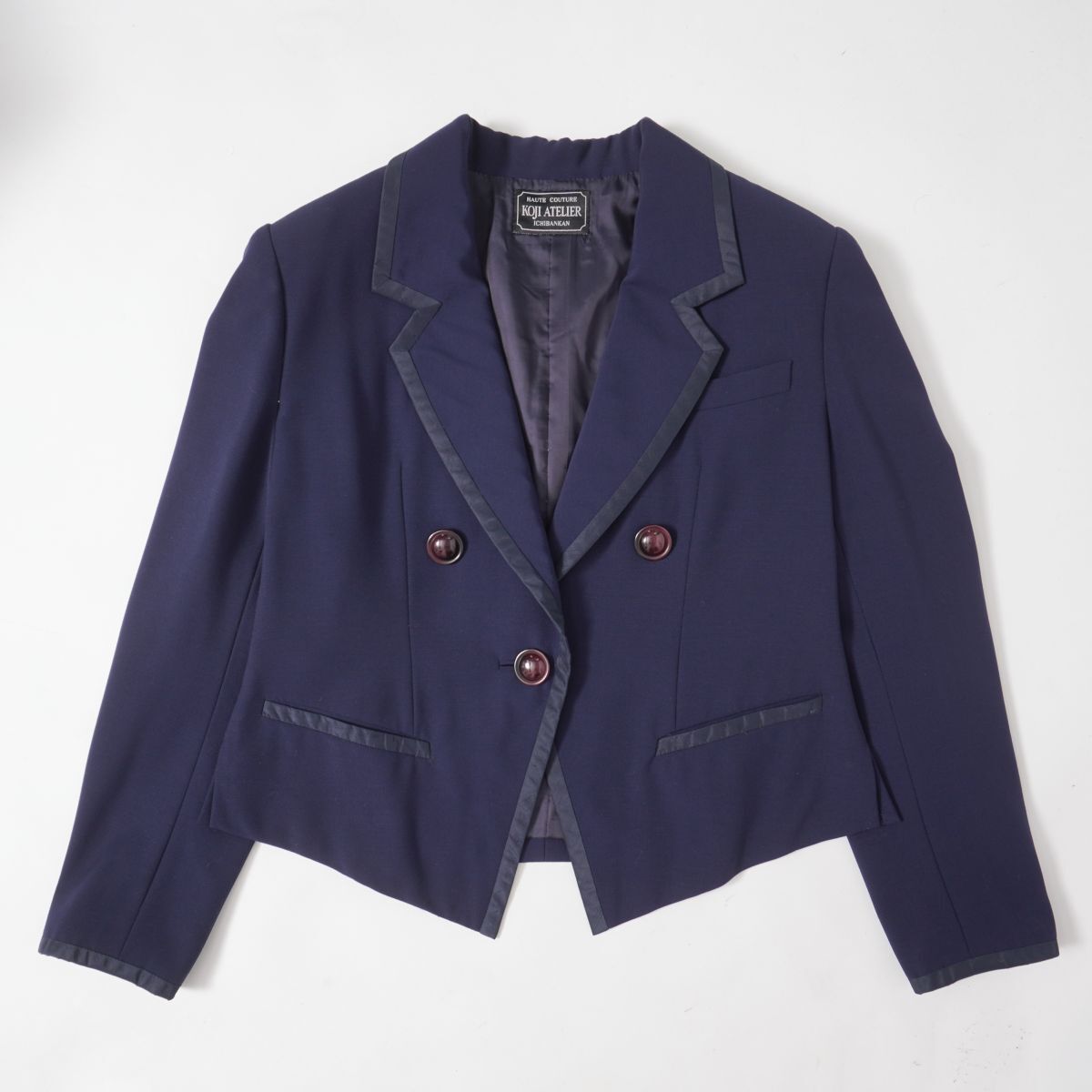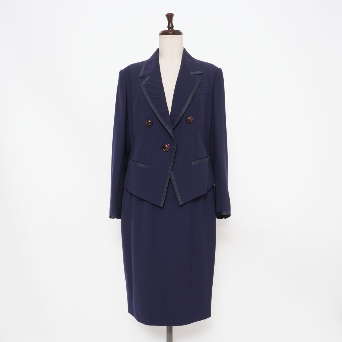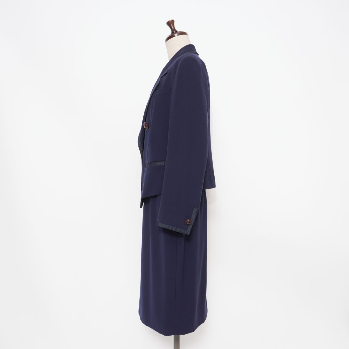 美品 KOJI ATELIER コージアトリエ 壱番館 セットアップスカートスーツ 総裏 ミモレ丈 フォーマル ネイビー 紺 サイズM相当*GD905