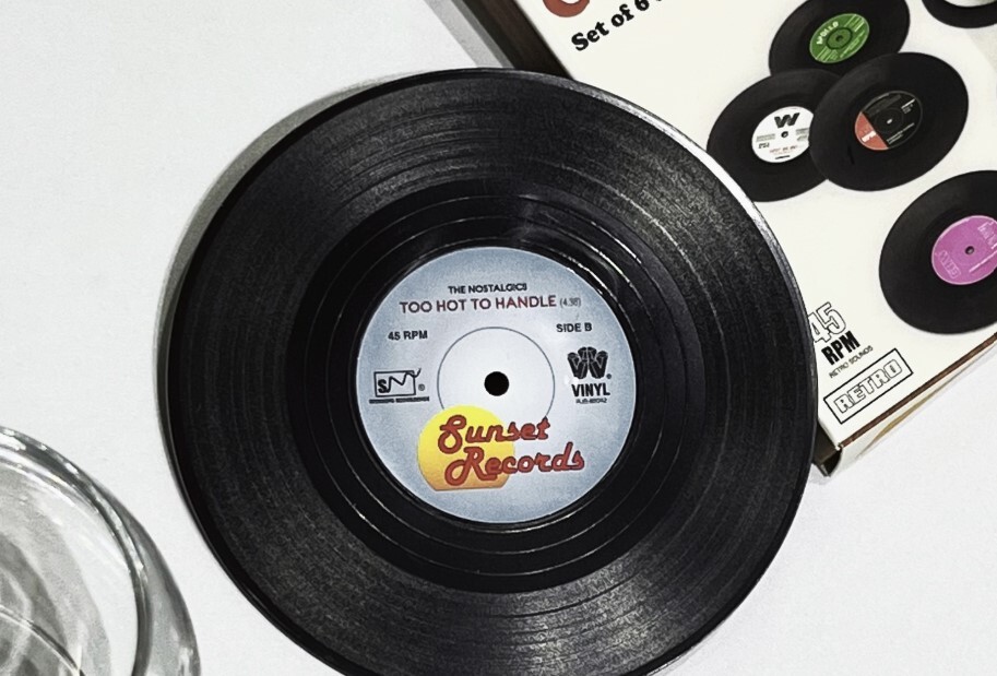 レトロ感がとってもお洒落な レコード盤コースター 今にも音が出てきそうなクオリティでございます。