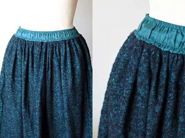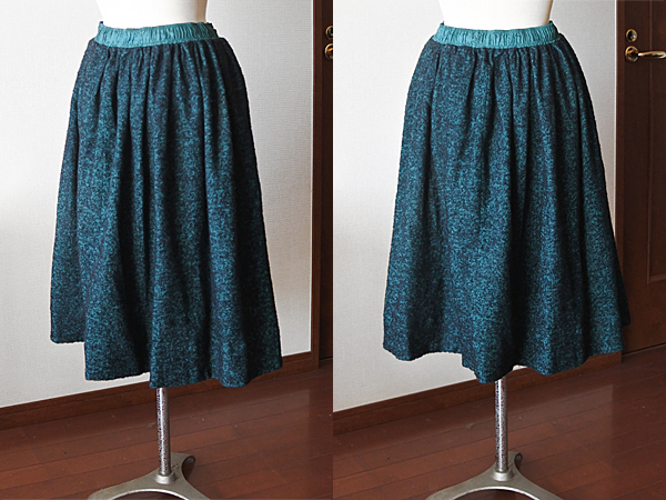 as know as de base◆グリーン×黒/起毛素材/ウエストゴム◆sk059