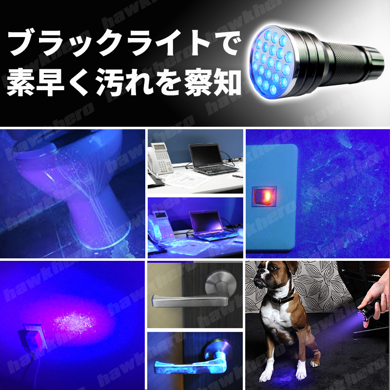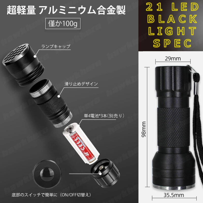 | ブラックライト UV 紫外線 LED レジン ジェルネイル 釣り 掃除 汚れ発見 ペット尿跡 日常点検 ルアーワーム 蓄光 アート プラモ 撮影 21灯 | |||