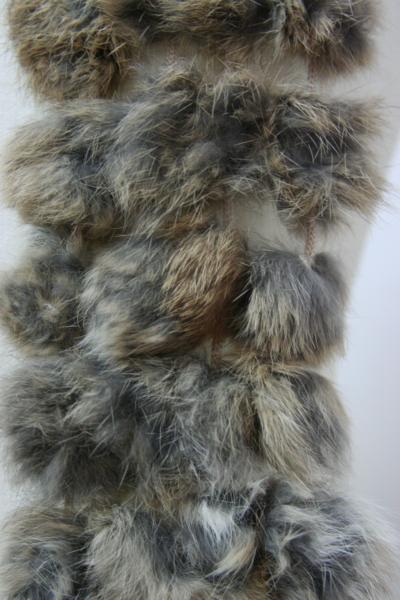 ・天然ラビットファーをボンボンにしてつないだマフラーです。
