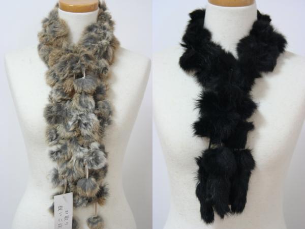 送料無料◆超お得◆2色組◆ふわふわ◆天然素材◆ナチュラルカラー◆ラビットファーマフラー(2連ブラック&4連ブラウン)