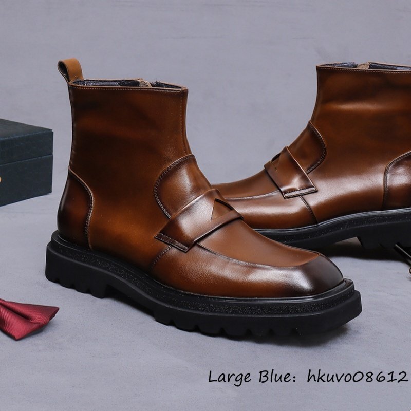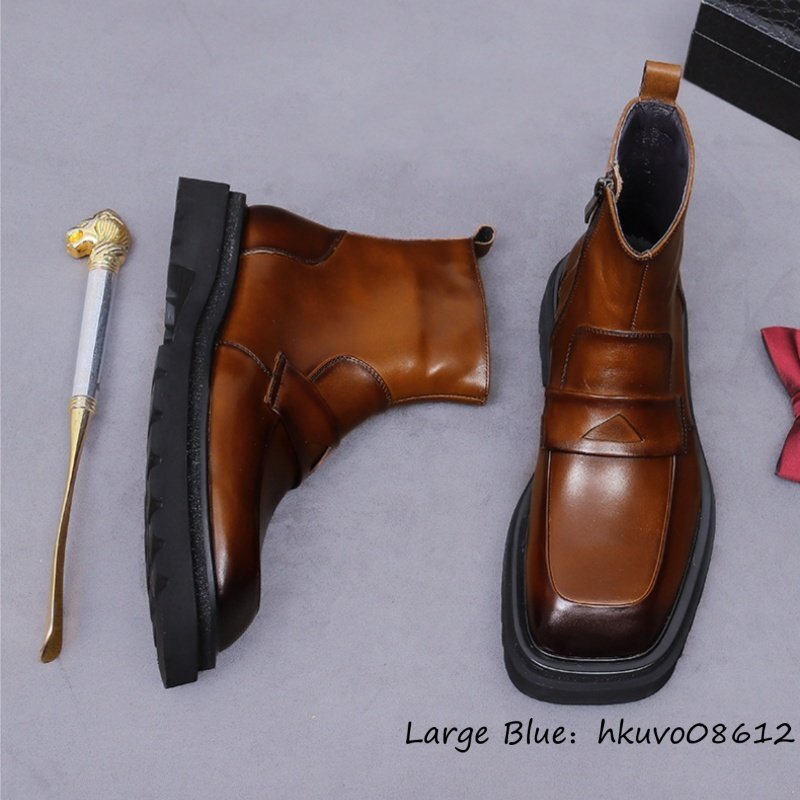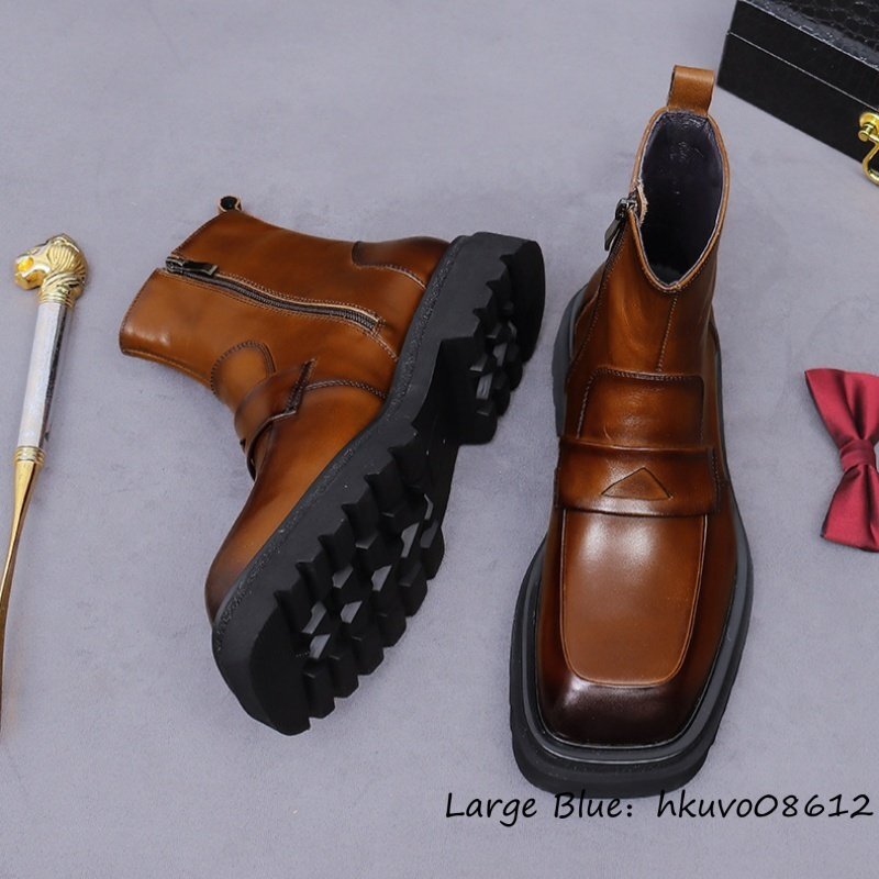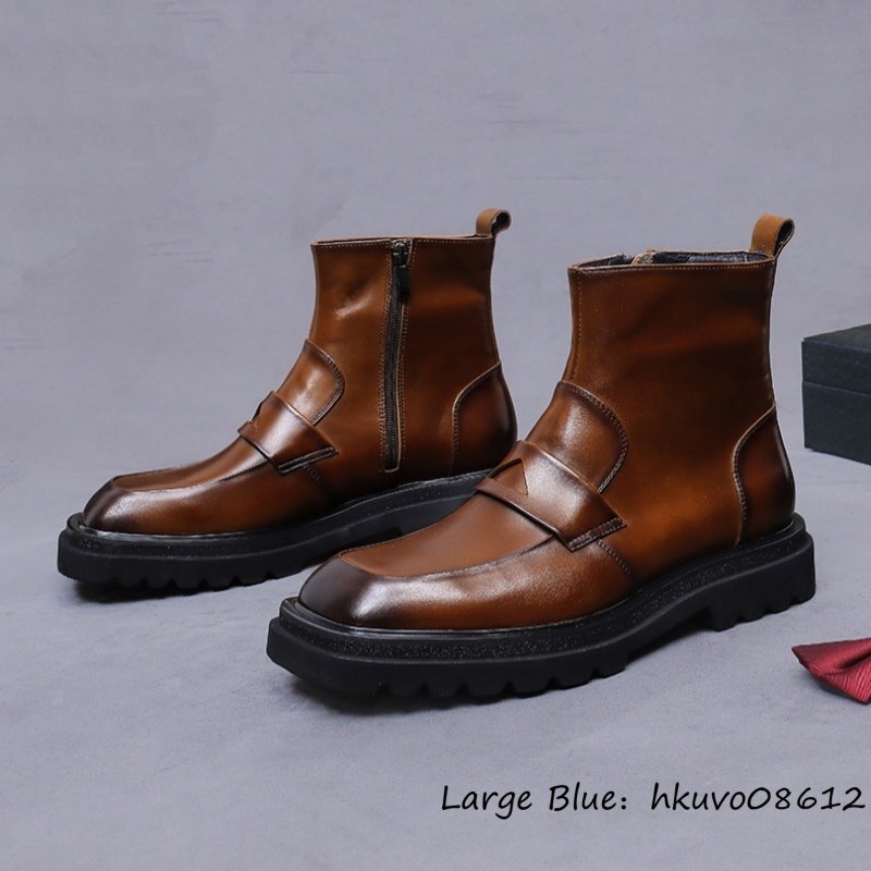 定価12万◆メンズ ブーツ マーティンブーツ 本革 レザーブーツ サイドジップ 職人手作り ショートブーツ イギリス風 牛革 ブラウン 28.0cm