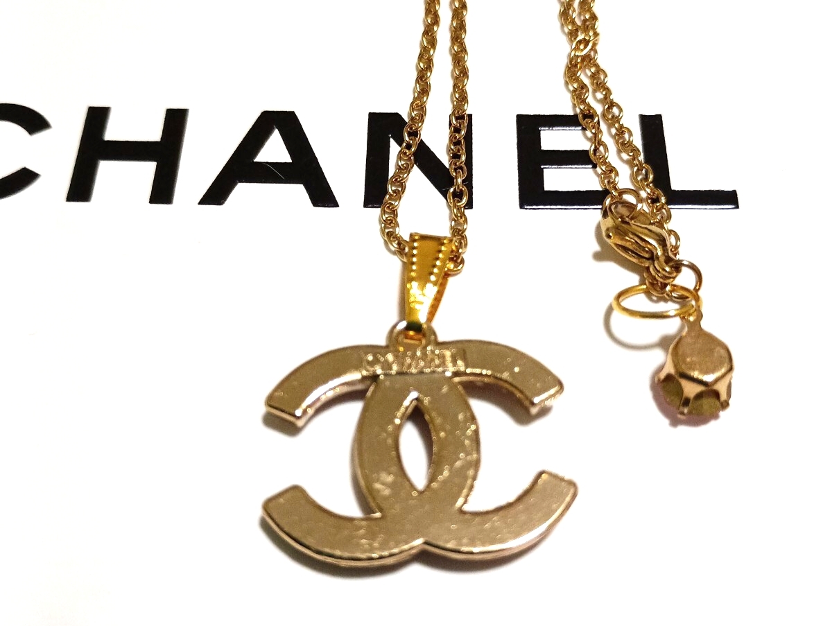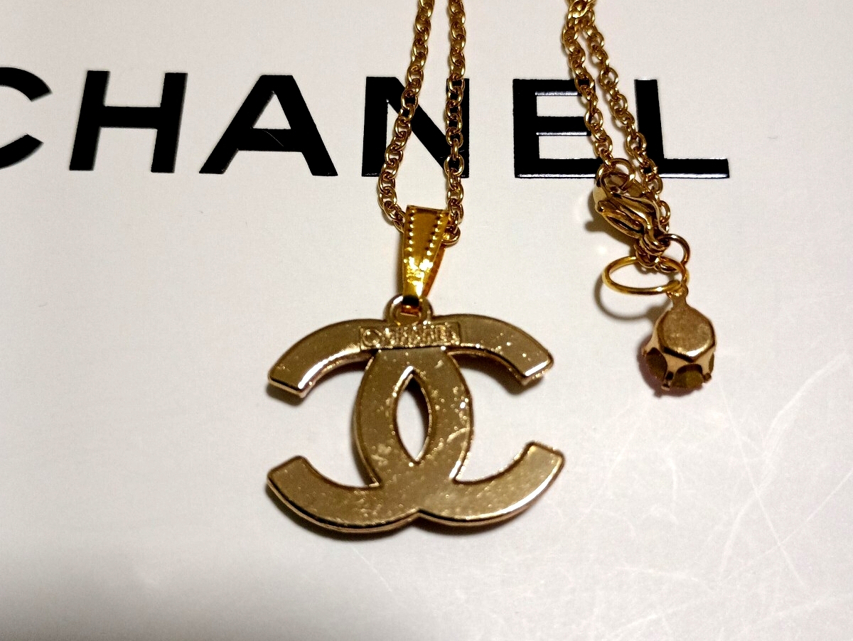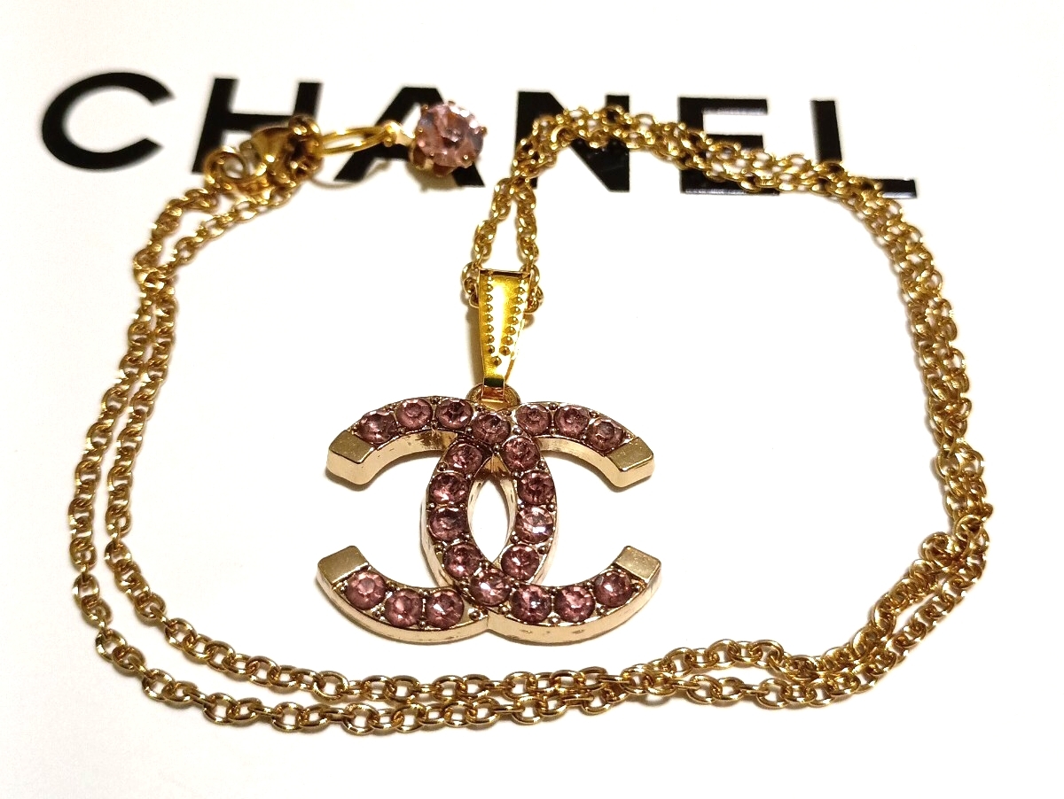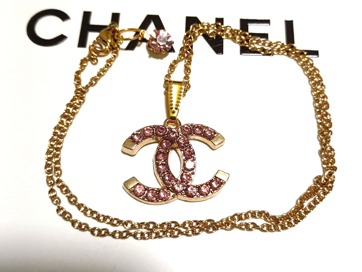 CCロゴマーク チャームトップ ネックレス ヴィンテージ 色合いは薄ピンク系 裏側に刻印あり