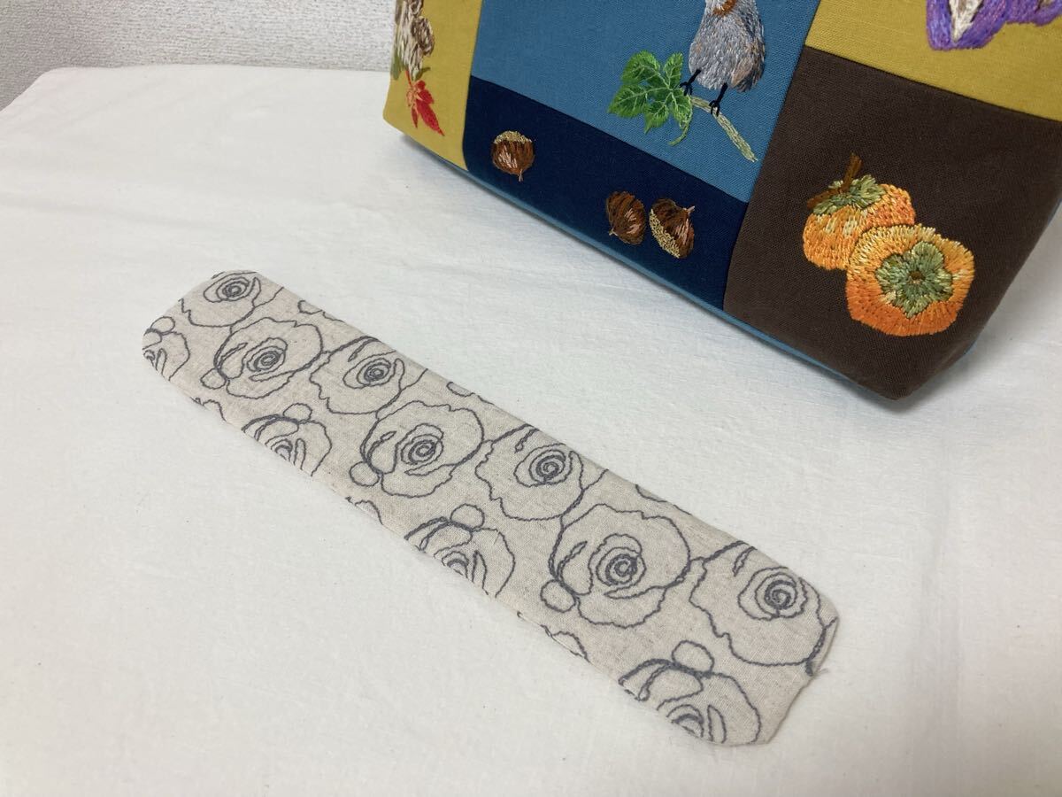 裏地:素材ーリネン100%(ミシン刺繍あり) 色:生成り