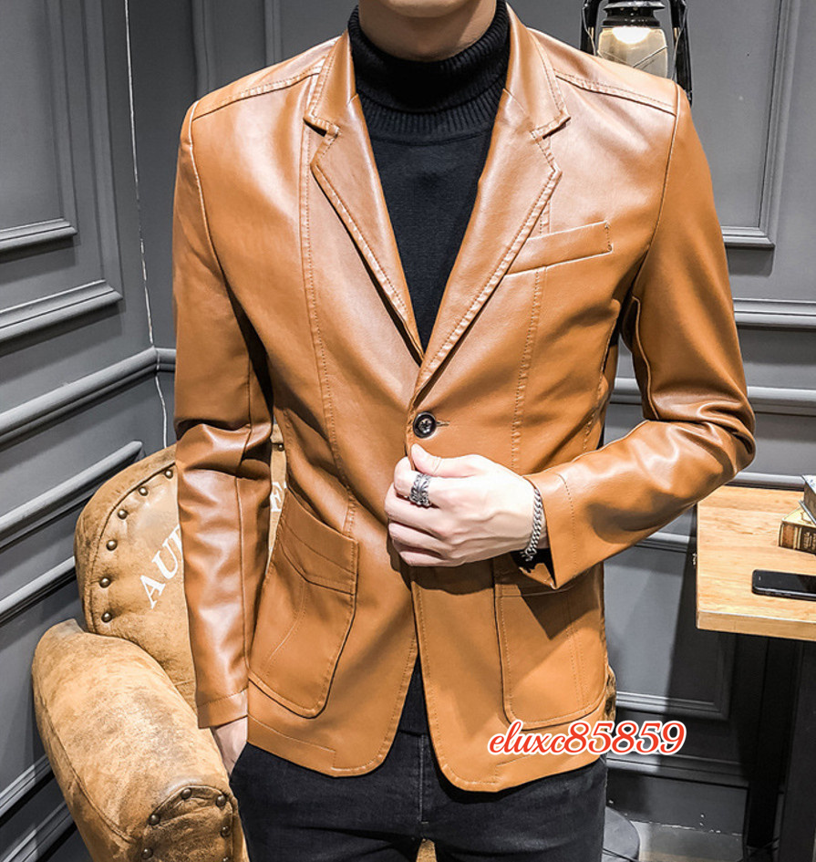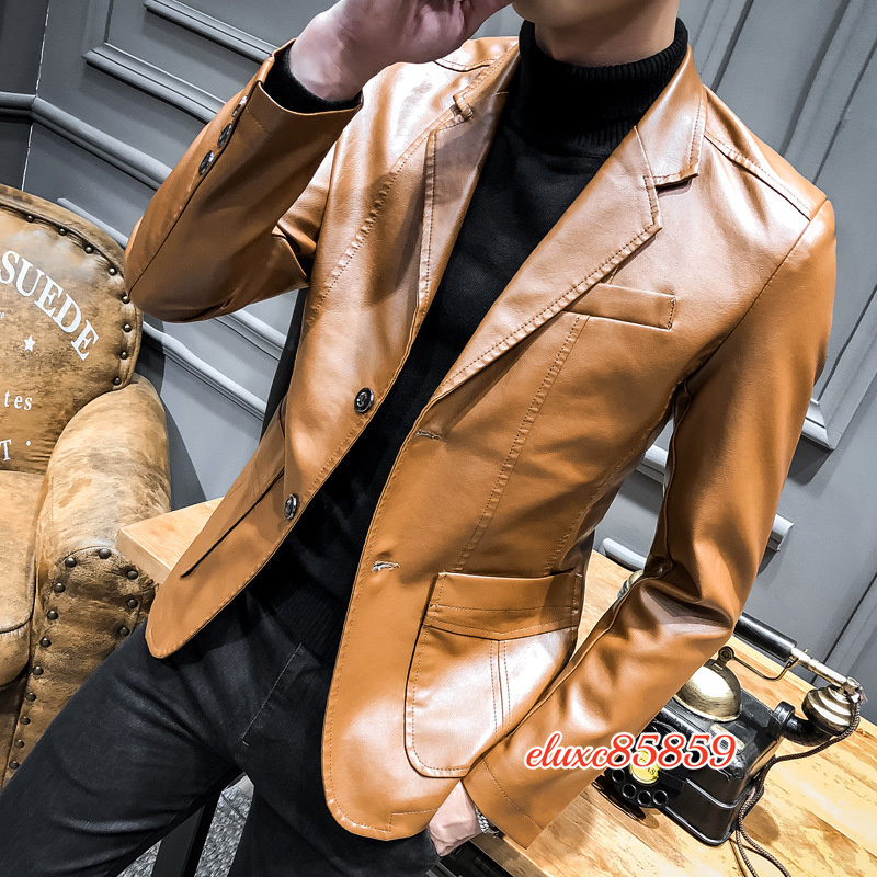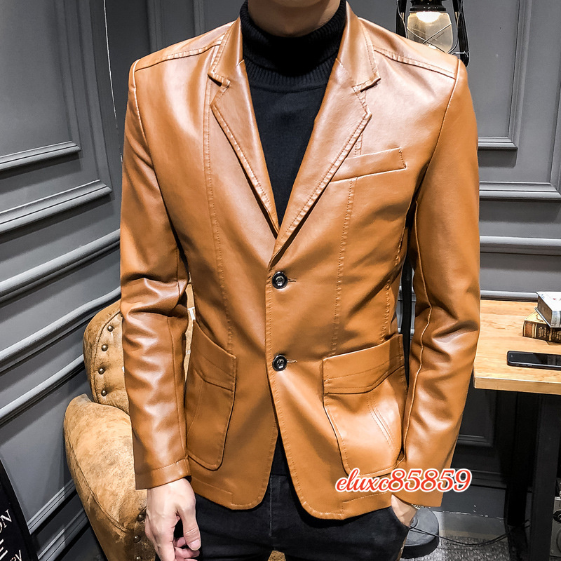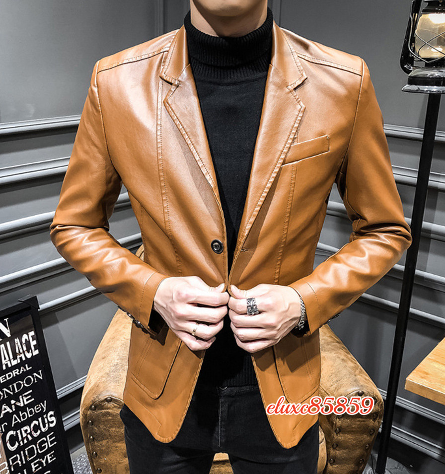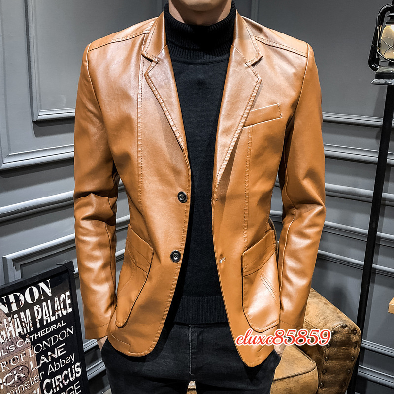 秋新品 ライダースジャケット メンズ テーラードジャケット レザージャケット 革ジャン 細身 大きいサイズ有り サイズ選択可L カーキ