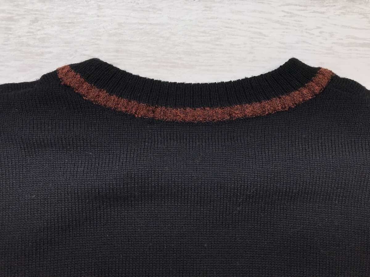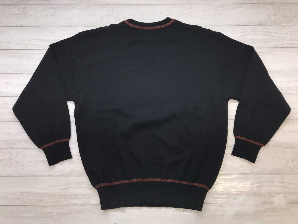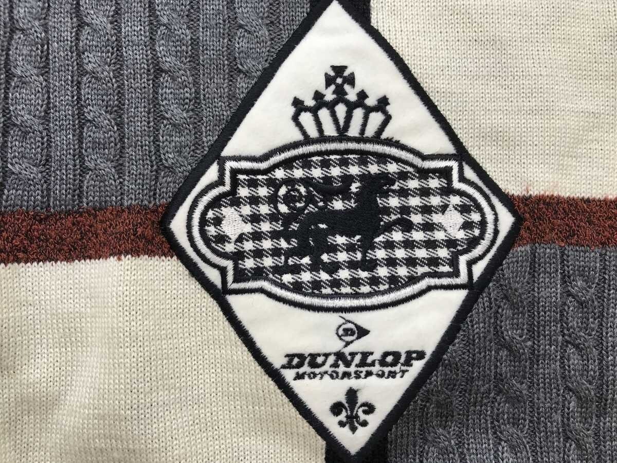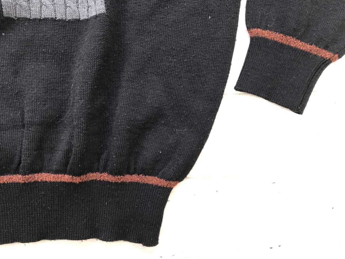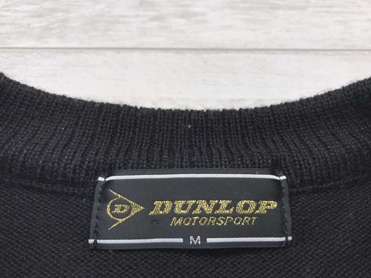 ダンロップ DUNLOP レトロ トラッド ゴルフ 模様編み 素材切替 ロゴ刺繍 ニット セーター プルオーバー メンズ ウール混合 M 黒です。