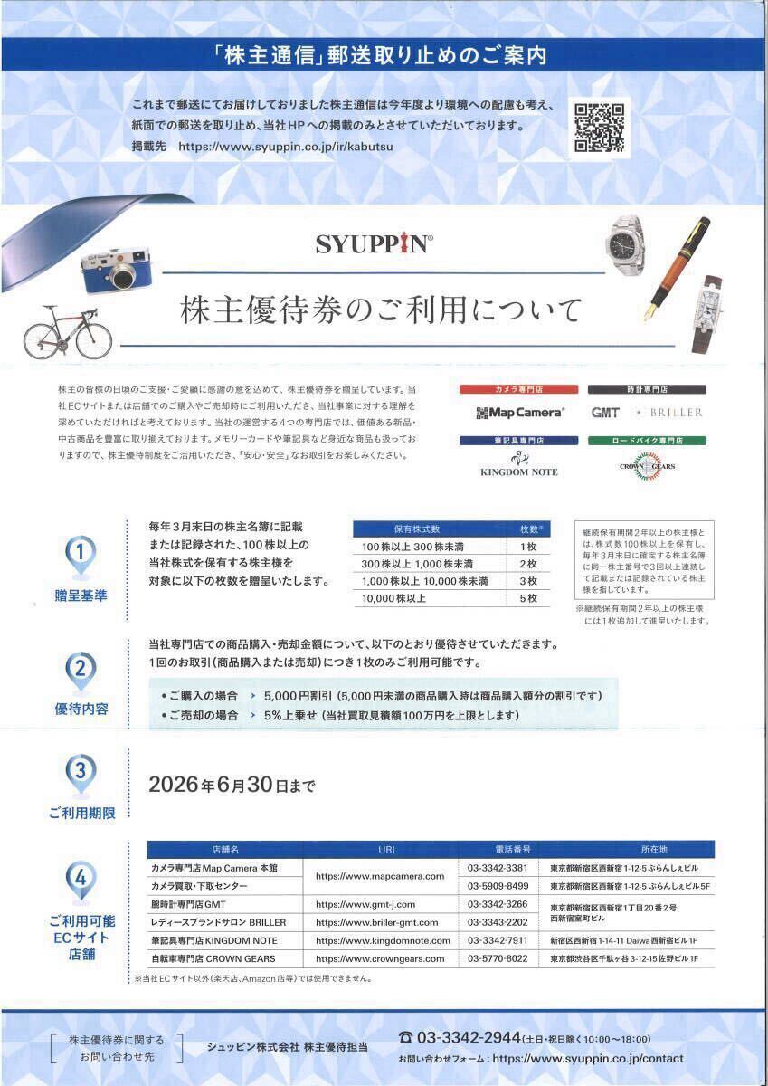 最新の シュッピン 株主優待券 ×1枚 の出品になります。