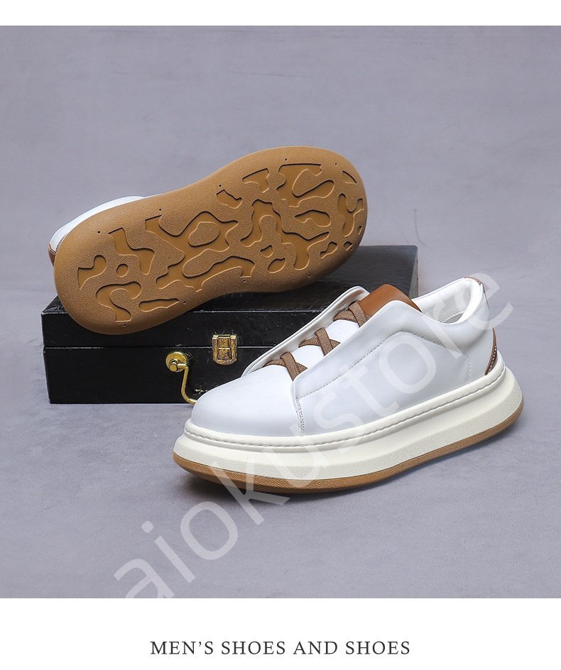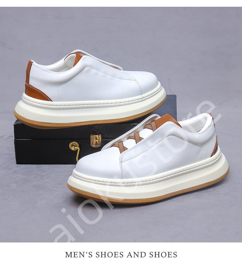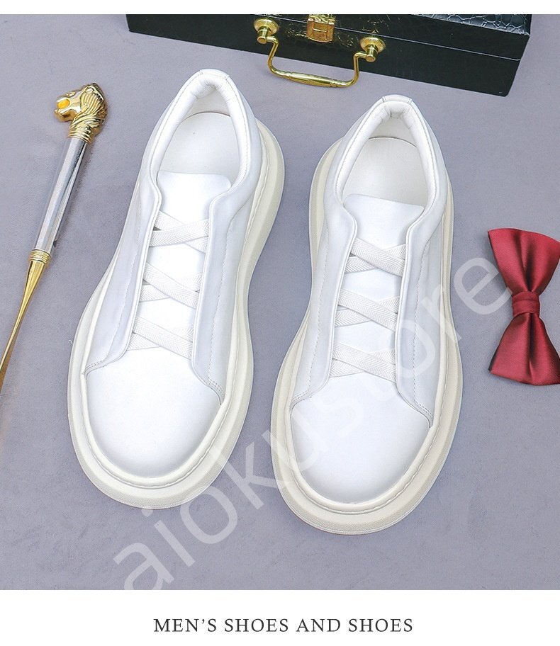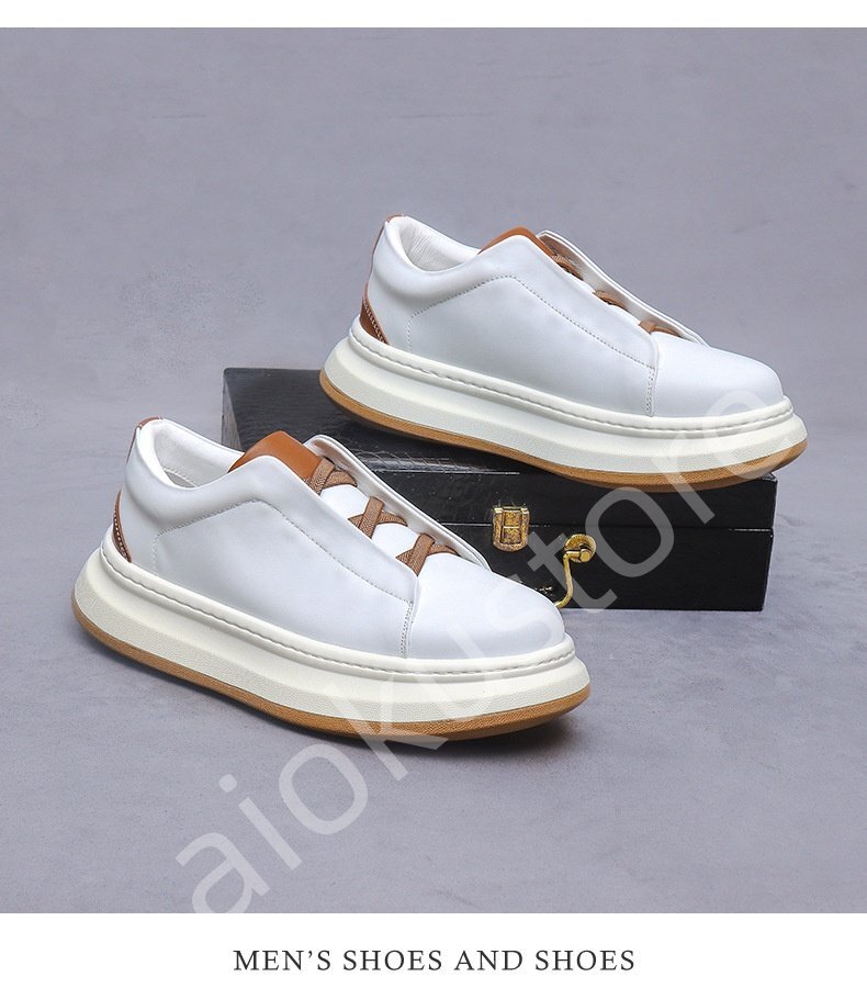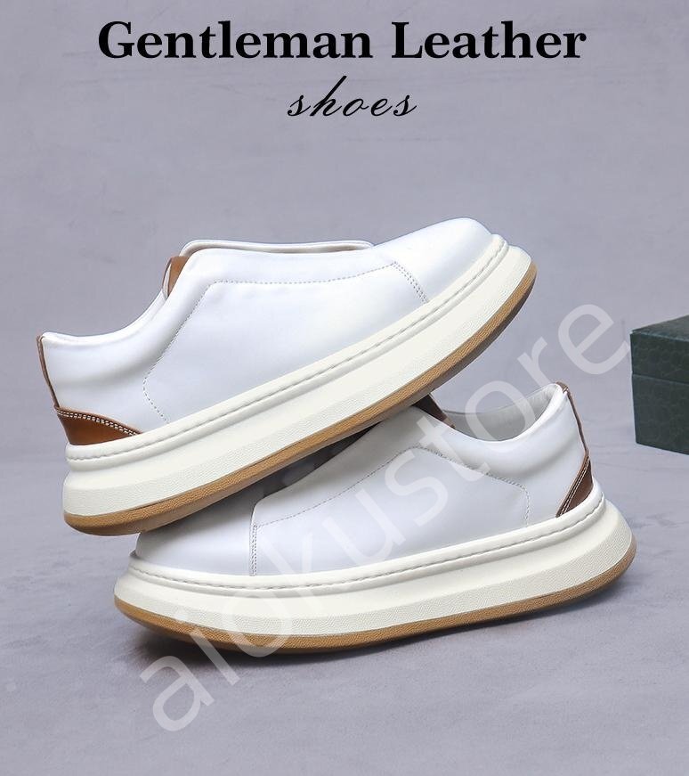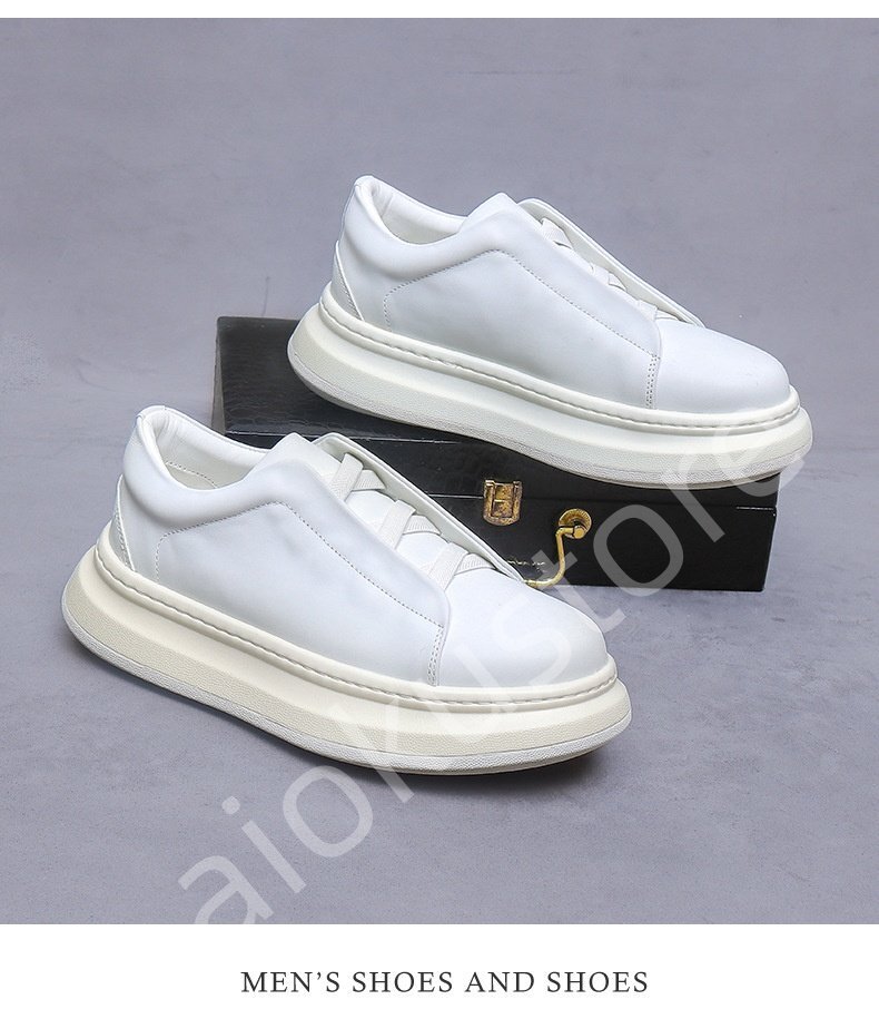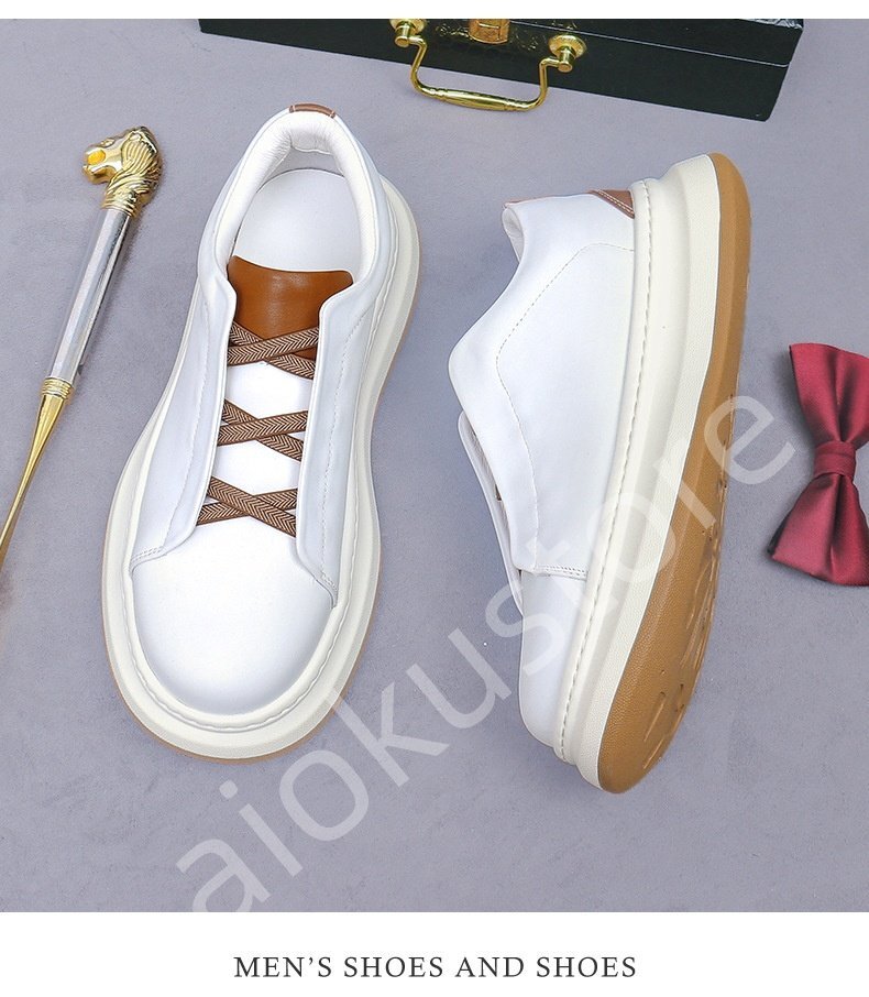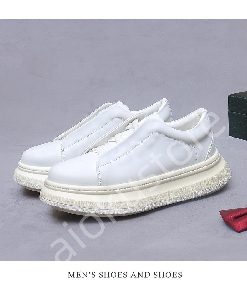 26-27cm スニーカー メンズ 高級牛革 ランニングシューズ レザーシューズ 4.5cm身長アップ カジュアル 通勤 ジョギング ホワイト##A027
