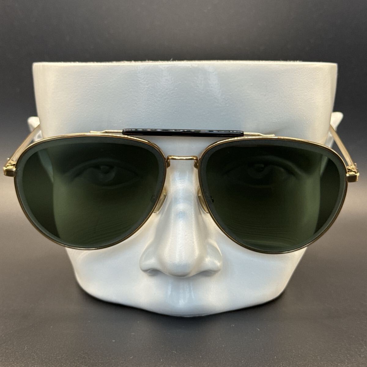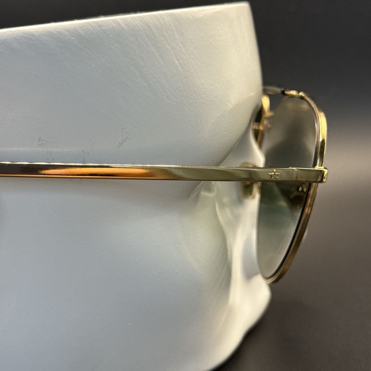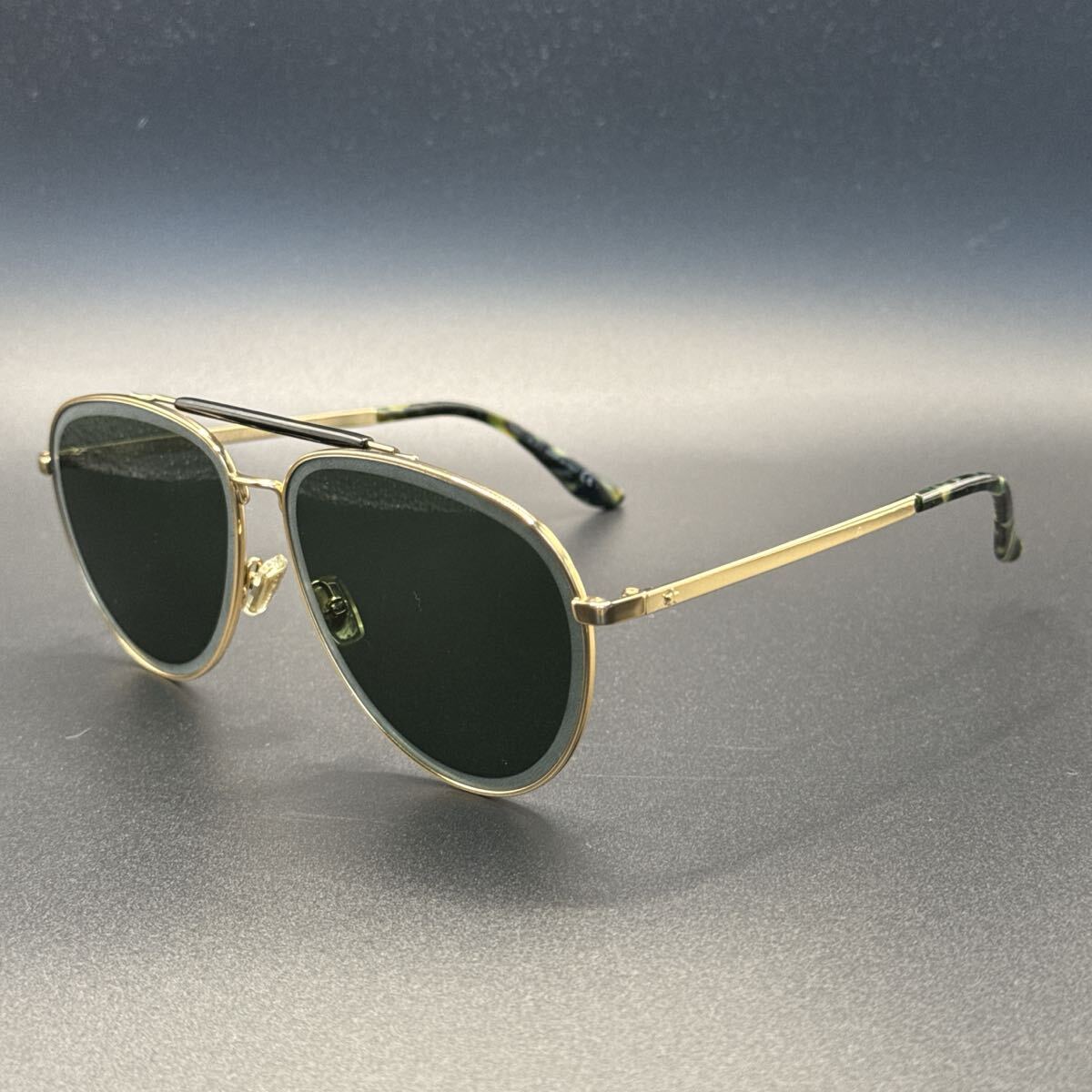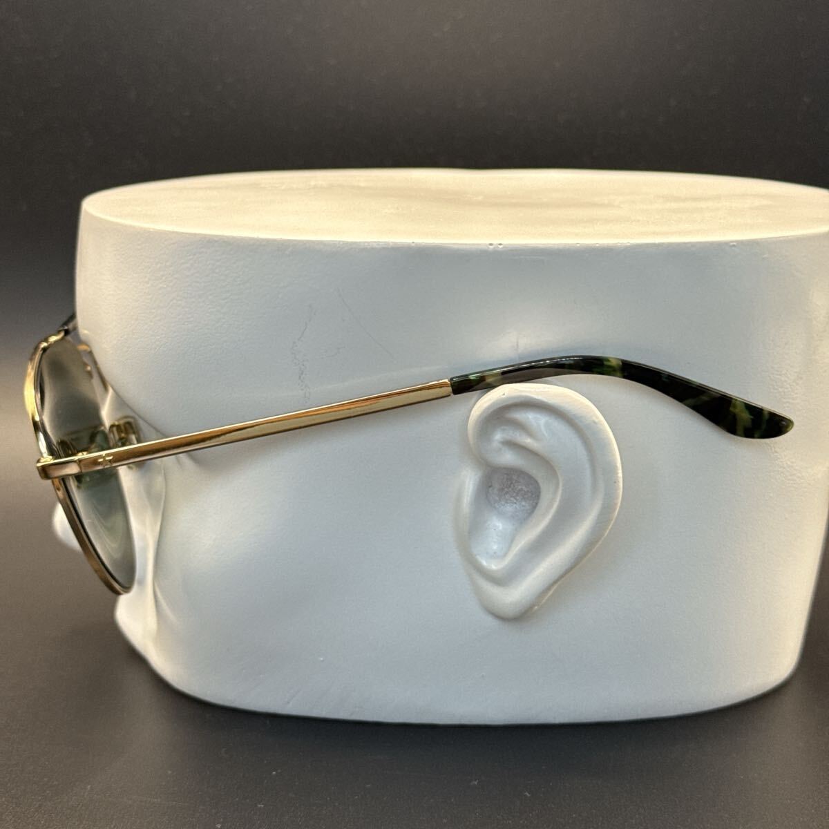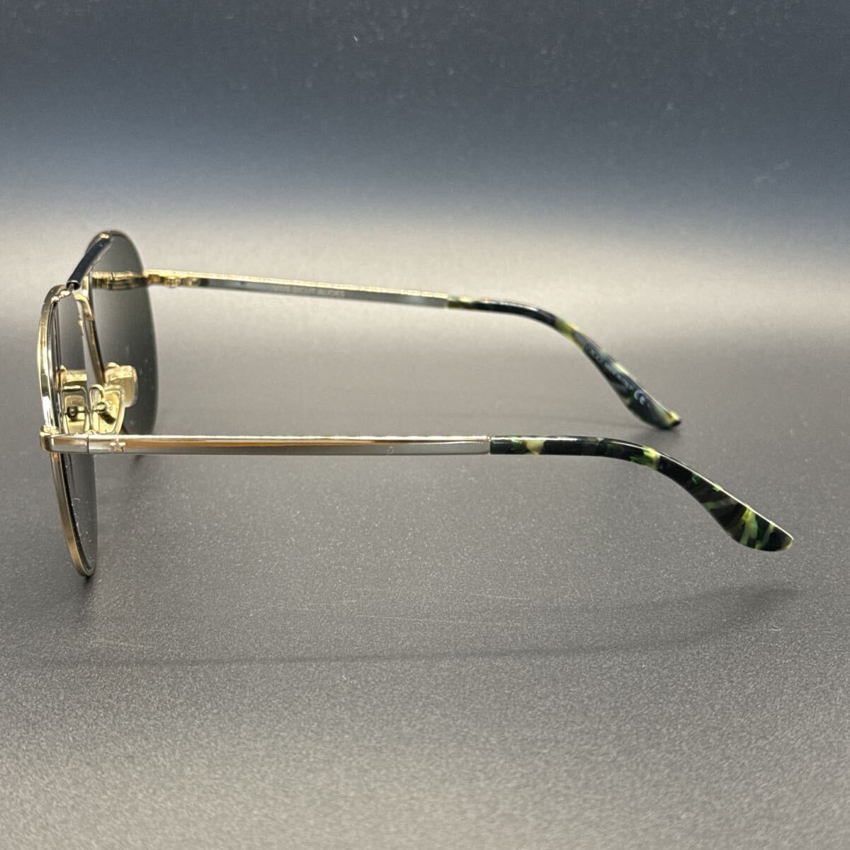 高級感あるゴールドメタルフレームに、深いグリーンレンズを組み合わせたエレガントなデザイン。