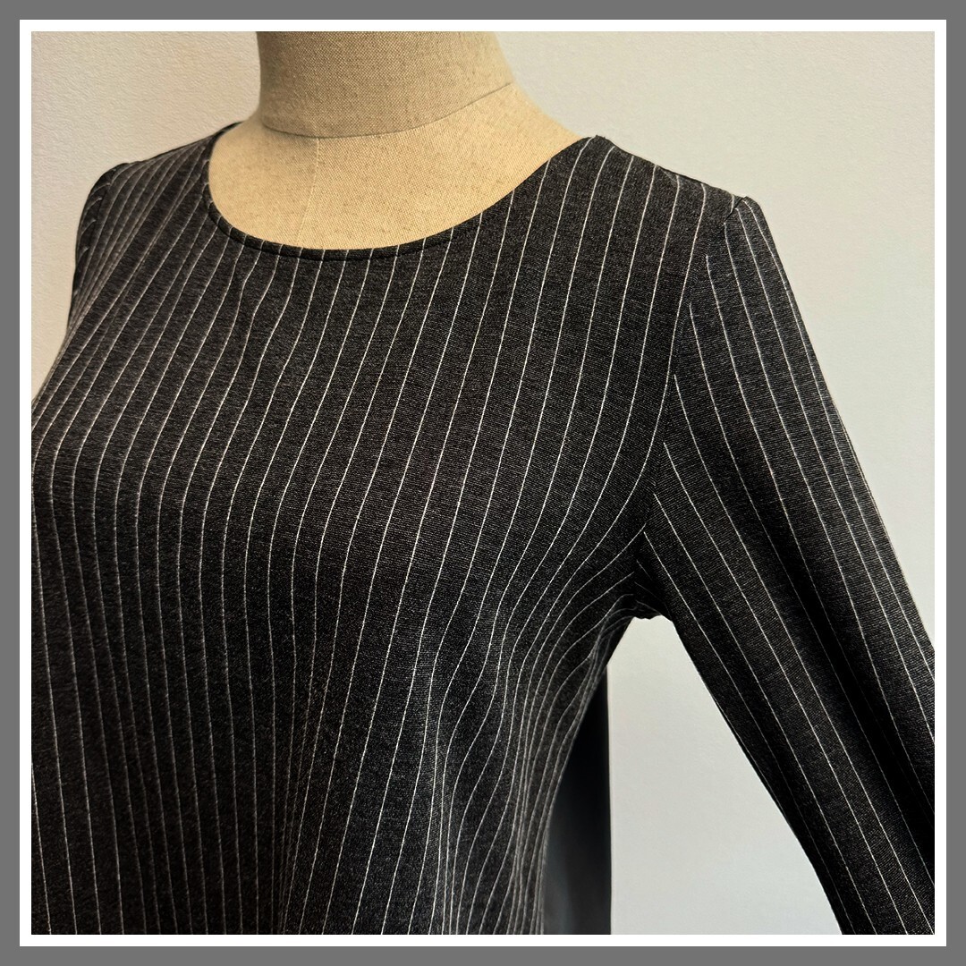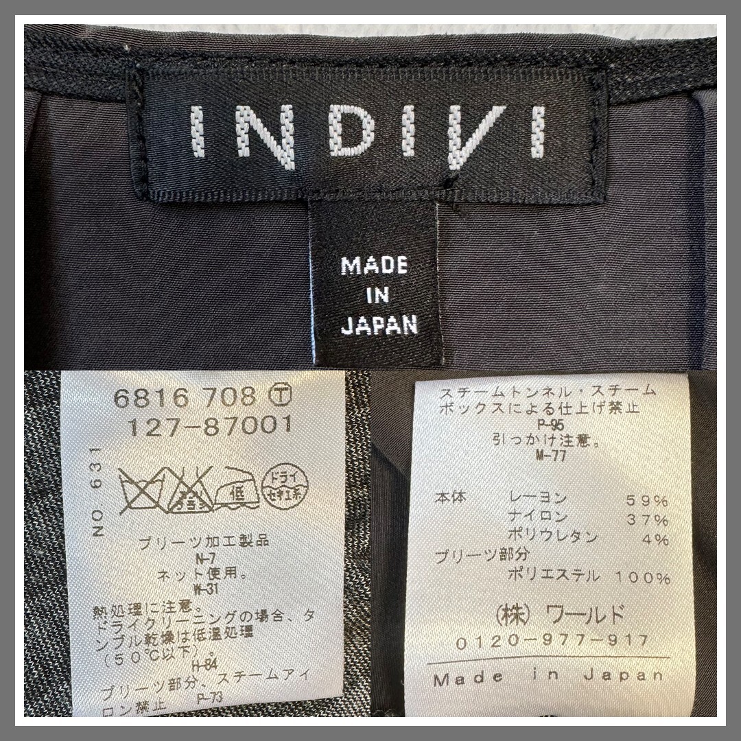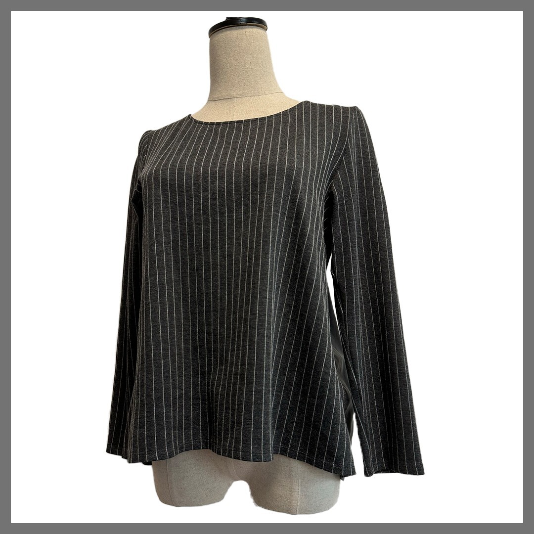 INDIVI インディヴィ ストライプ柄 コンビトップス 切り替え スタイルアップ ビジネス オフィス 大人 上品 ワールド 日本製 灰 グレー 38