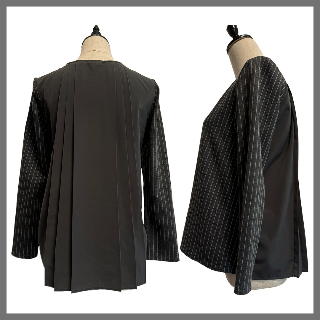 バッグスタイルにブラウス生地の切り替えデザインがポイントのプルオーバートップスです。