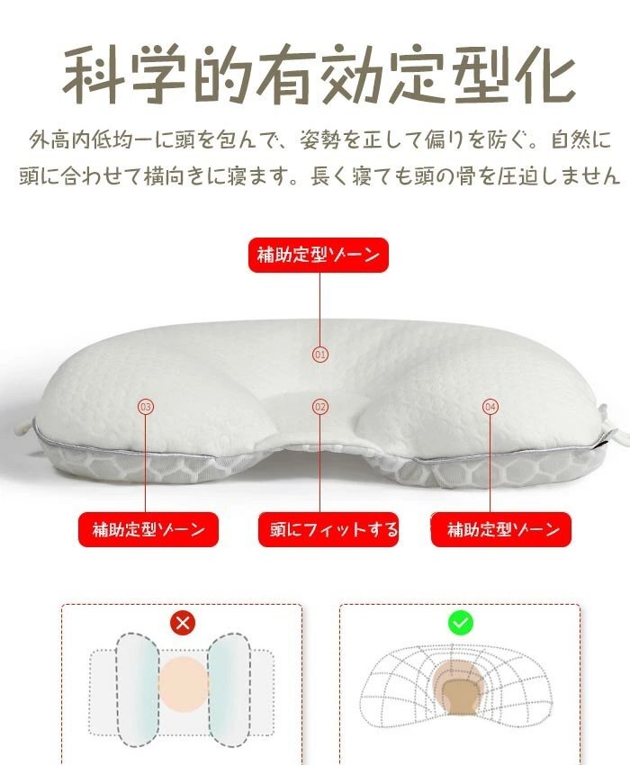 ベビー枕 絶壁防止 赤ちゃん 枕 頭の形 絶壁 向き癖 矯正 三面調節 通気性抜群 向き癖防止 両面使える 赤ちゃん まくら ベビーピロー☆1点