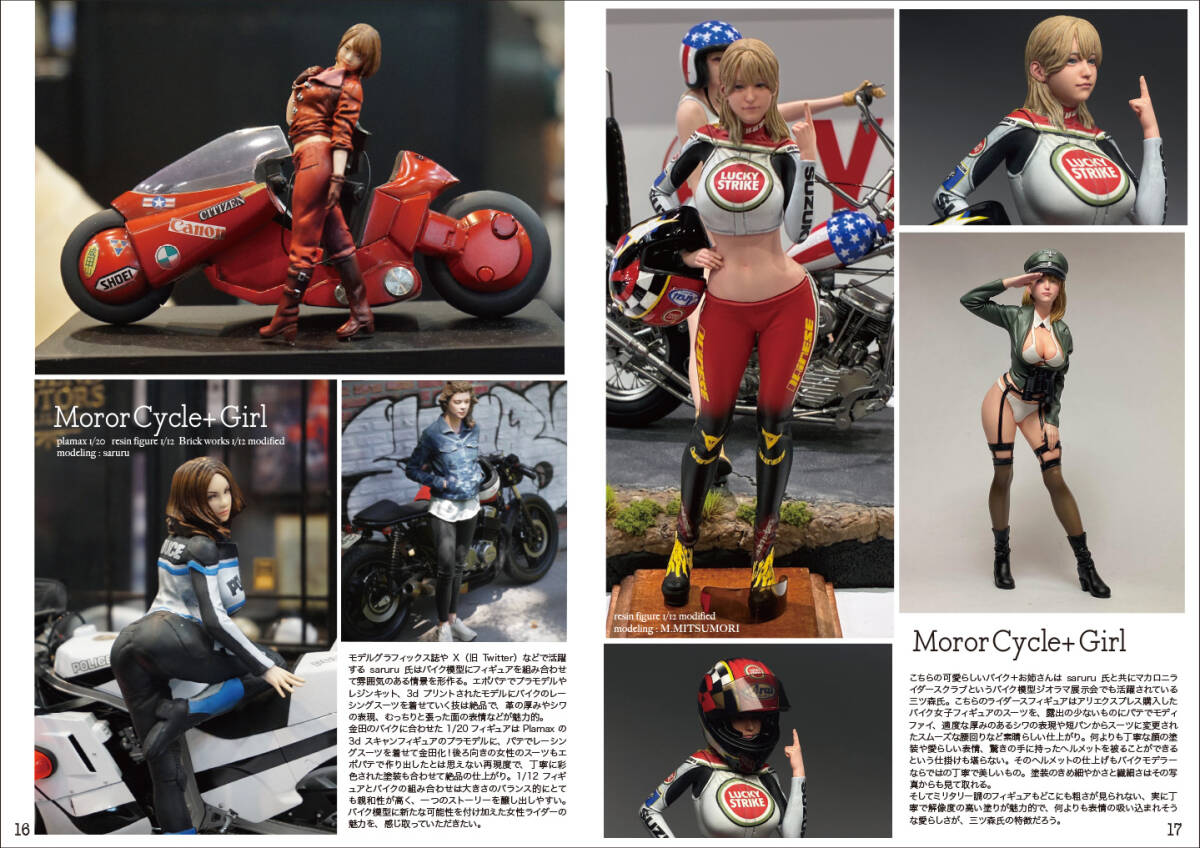 今回は巻頭に最近ハセガワフィギュアに加わったバーミリオンさん原型の女子高生を製作過程と共にフューチャー。そしてお馴染みの林さん原型フィギュアや3dプリントフィギュアなどを掲載、フィギュアペインターのゲストページも多数、大型レジンフィギュアからマックスファクトリーのネイキッドエンジェルの油彩技法塗りまで、