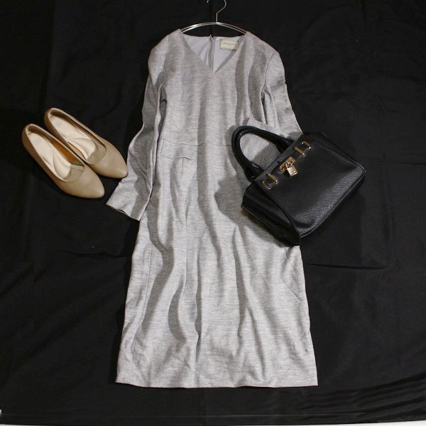 美品 UNITED ARROWS ユナイテッドアローズ ウール100% ジャージーストレッチ ワンピース 38号 M 秋 冬 25A10
