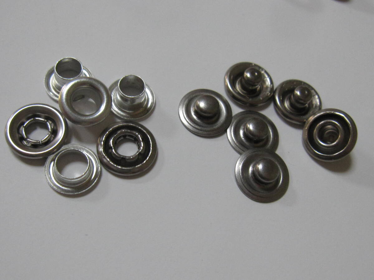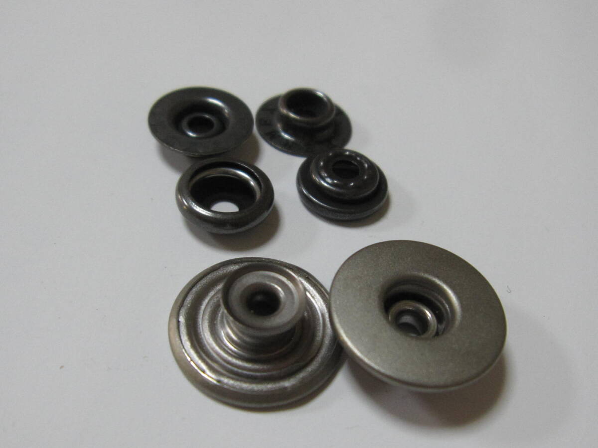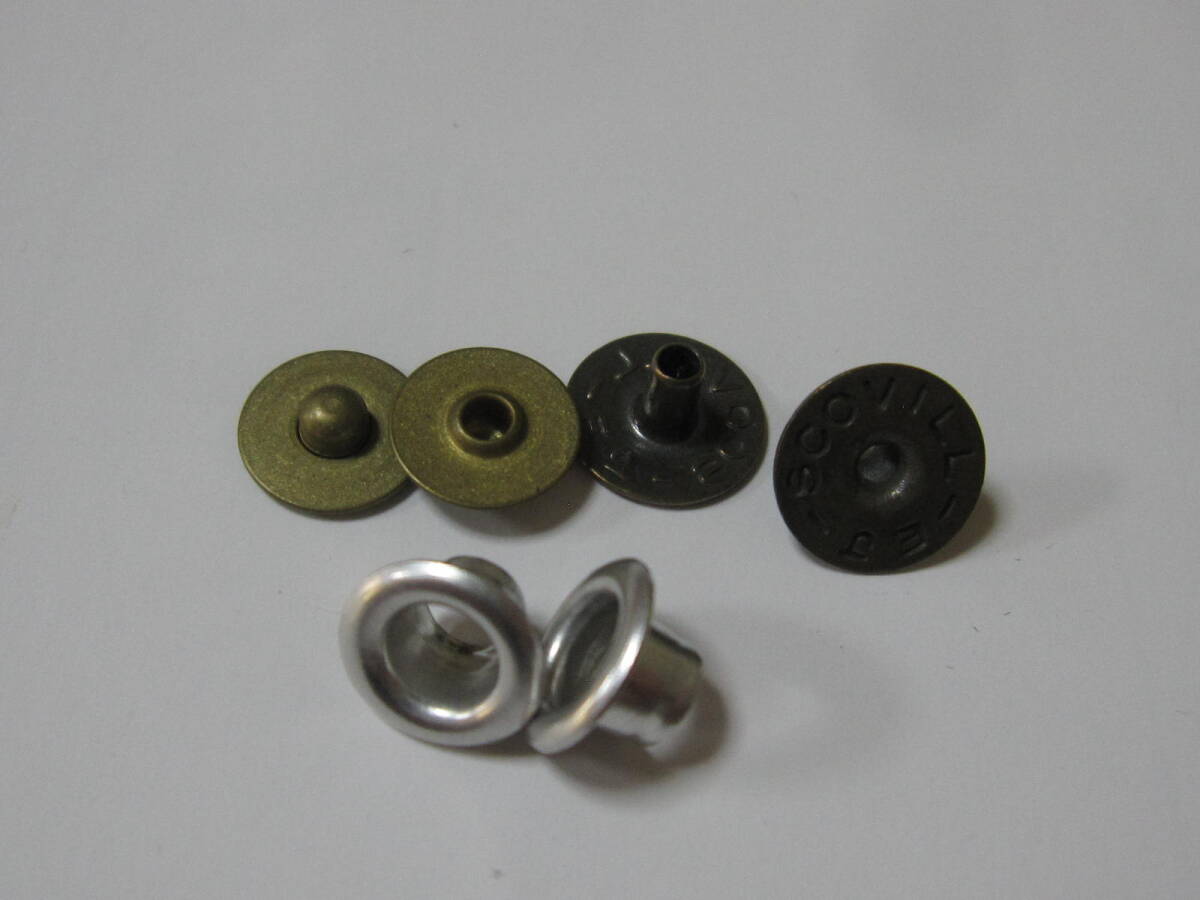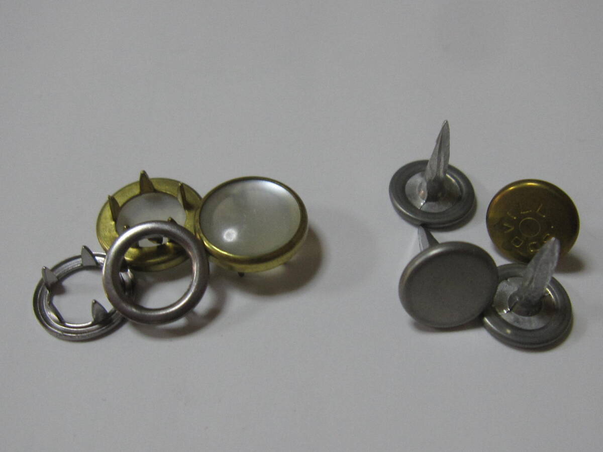 ボタンは糸付けではなく専用の機械(打ち機)を使って打ち付けて使用、機械が無くても使用できるパーツ等、色々と混ざった状態!