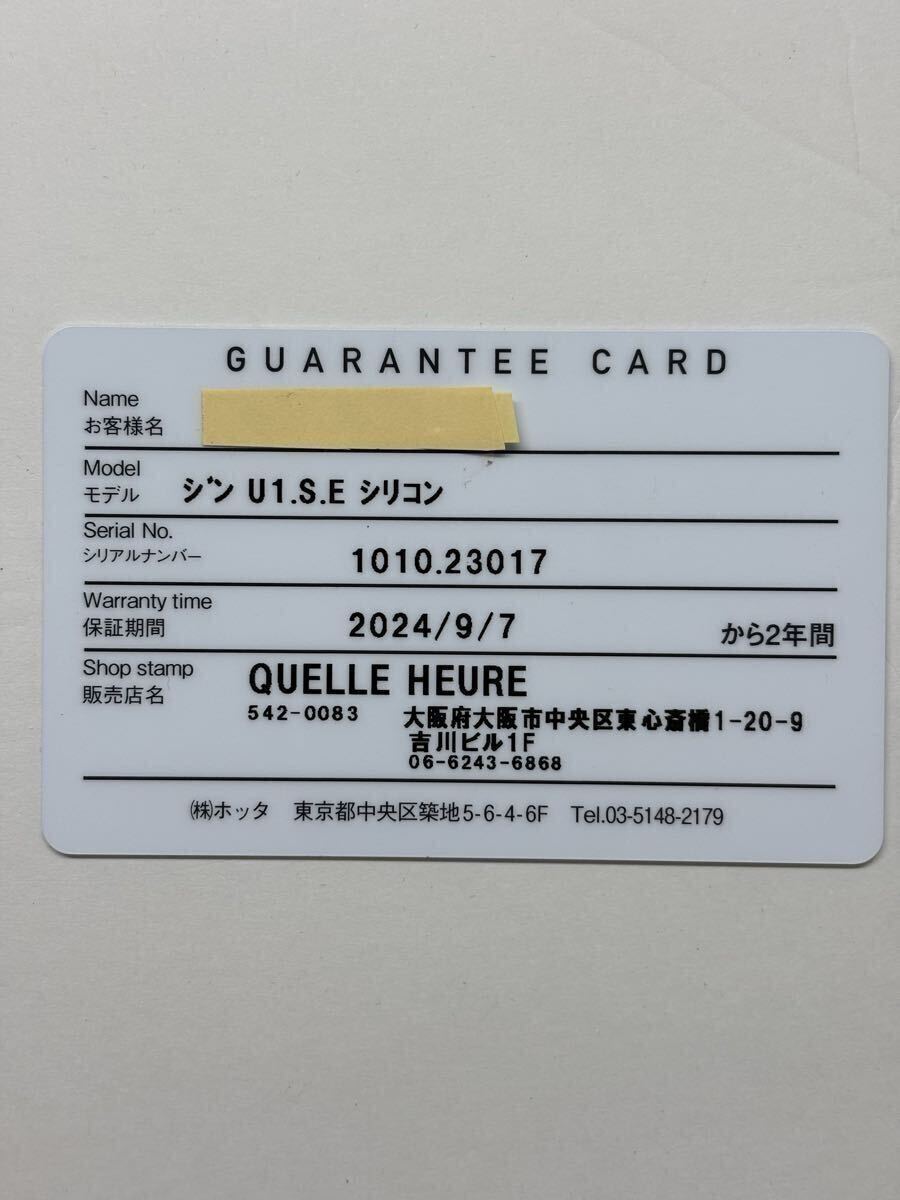 ギャランティーカードのお客様名欄のみ黒塗りして発送させていただきます。